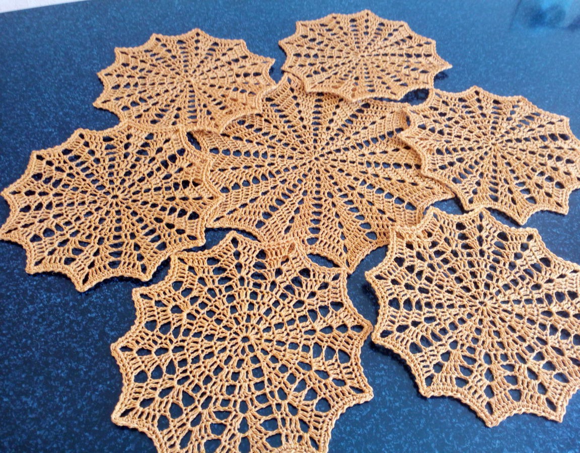Красивые ажурные вязаные подставки из льна цвета "Горчица" для Чайной или Кофейной церемонии! Украсят интерьер любого дома, сохранят вашу мебель от механического или термического воздействия, обязательно поднимут настроение или станут прекрасным подарком для друзей и близких, а также для всех ценителей изделий ручной работы. Подкрахмалены!