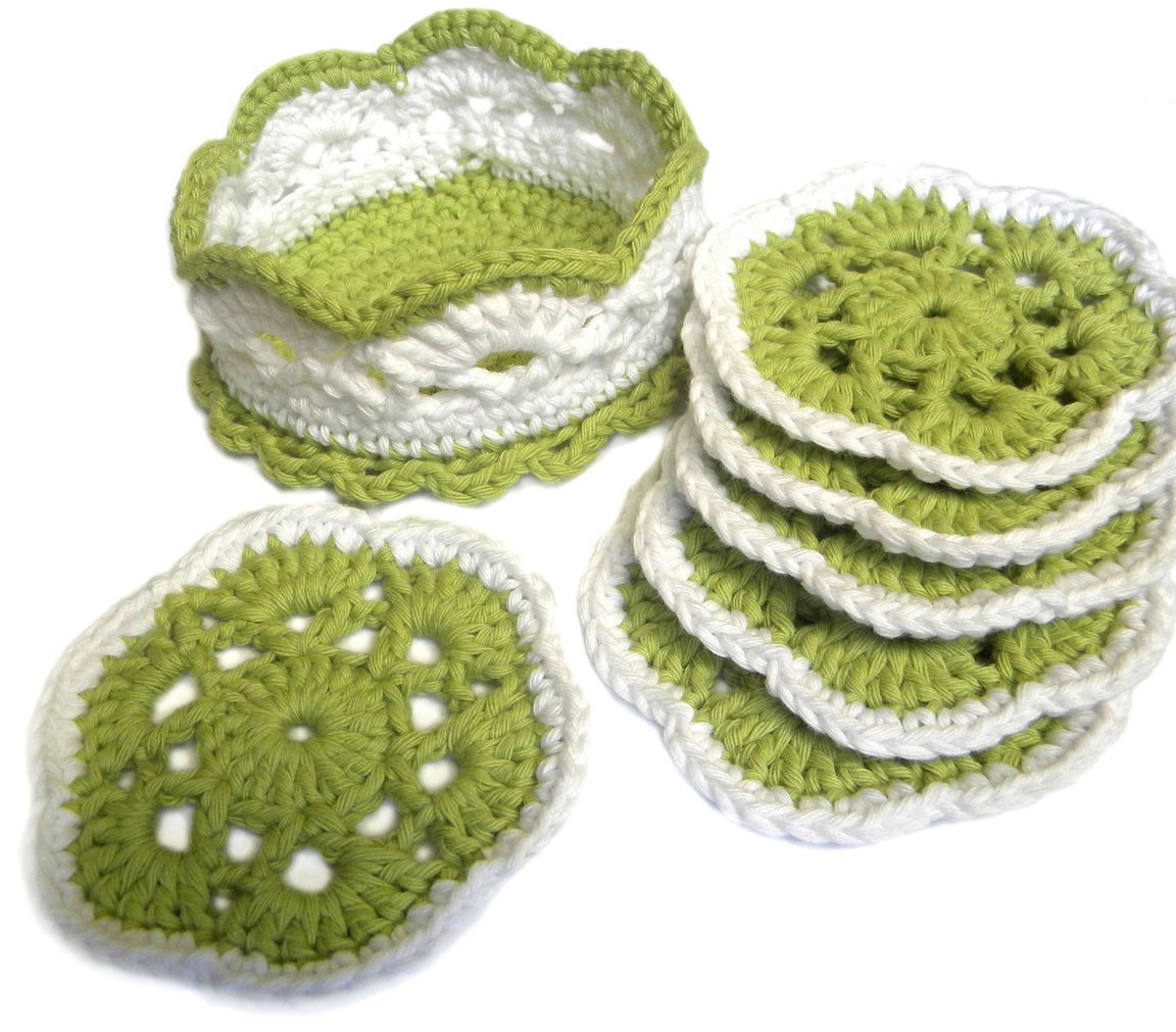 Подставки под горячее и корзиночка связаны из 100% хлопка, плотные, не требуют накрахмаливания.
