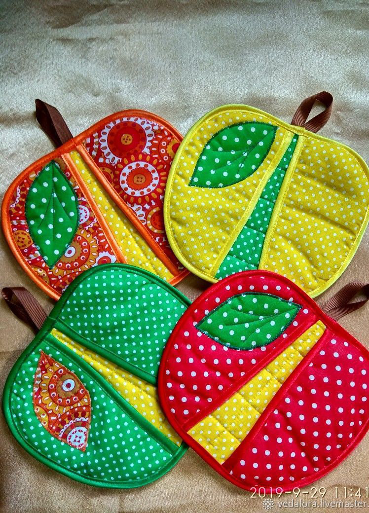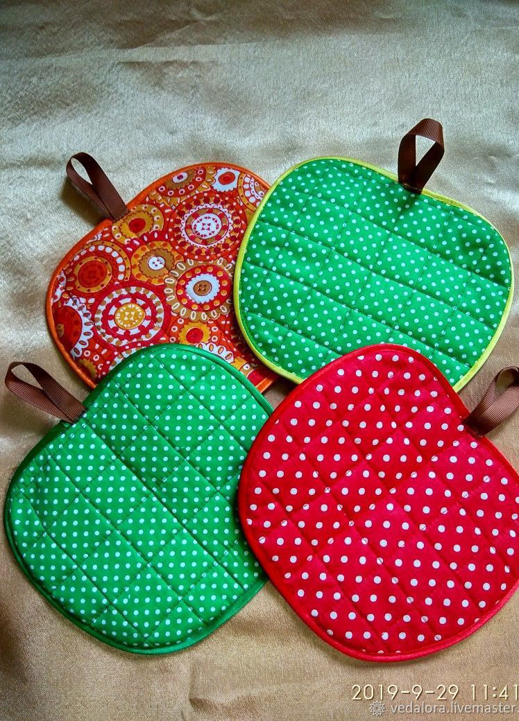Прихватки для кухни. Весёлые яблочки. Яблочки румяные. Яблочки в подарок.