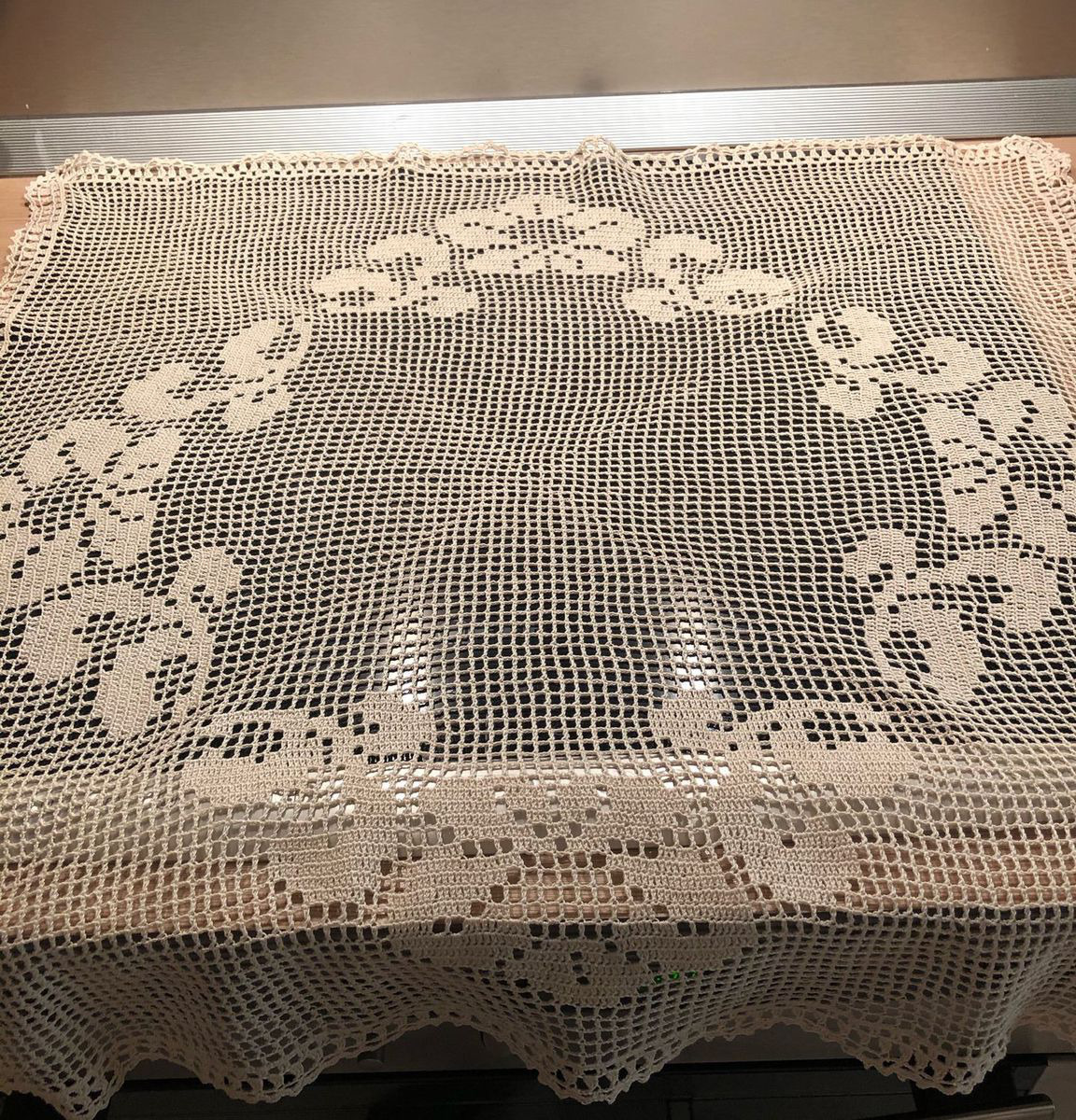 Салфетка связана в филейной технике из хлопковых ниток сливочного цвета, квадратной формы, размер 69х67 см