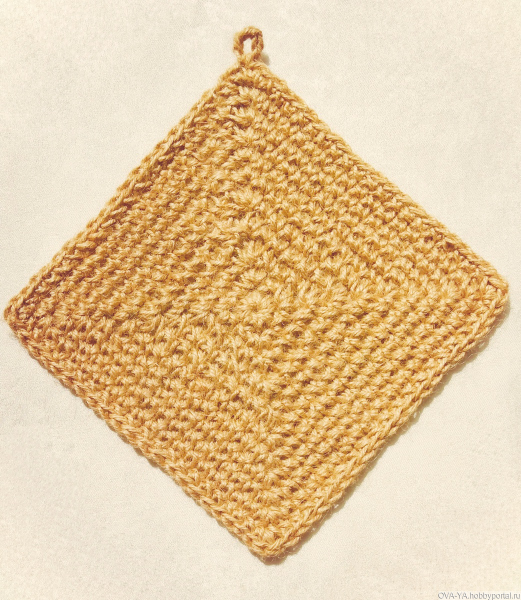 Салфетка-подставка квадратная для горячей посуды. Изготовлена из джута -100% натурального материала. Изделие отлично впитывает влагу, при этом оставаясь сухим и приятным на ощупь. Салфетка очень удобна и неприхотлива в уходе.