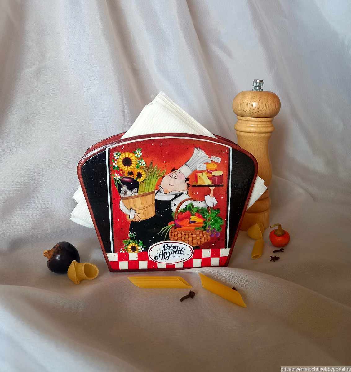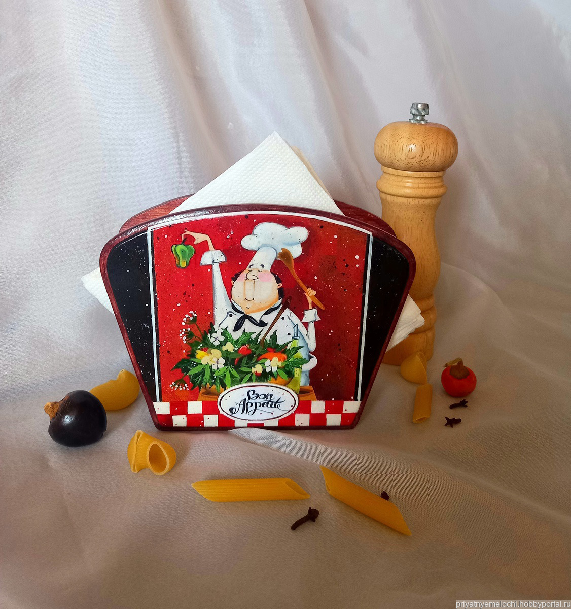 повар для кухни, салфетница декупаж, поварята, салфетница для кухни, салфетница ручной работы
