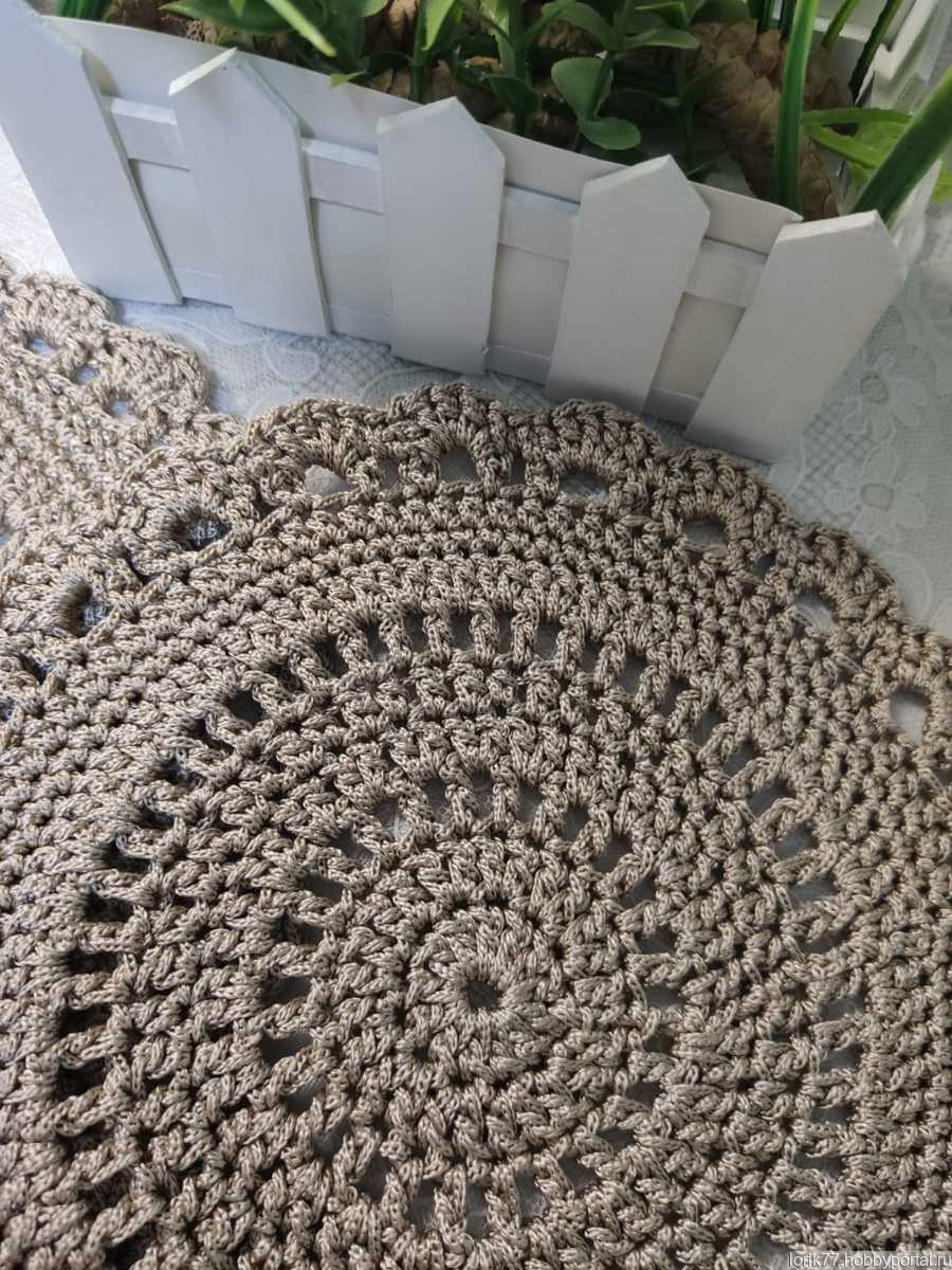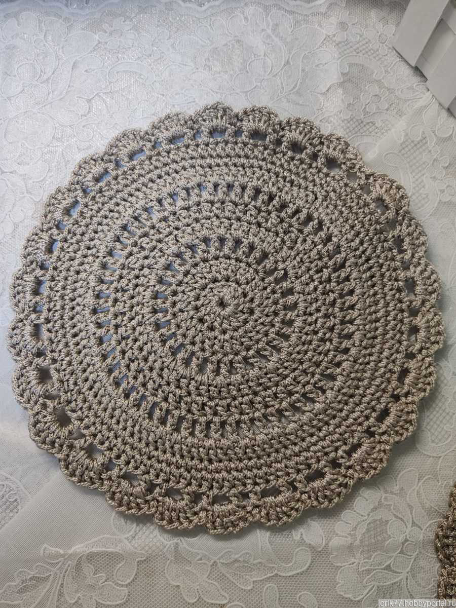 В наличии салфеточки. Три бежевого цвета диаметр 23 см и одна сиреневого цвета диаметр 26,5 см. Связаны из полиэстерового шнура 2 мм YARNART Macrame. Держит форму. Бежевые за 3 шт = 450 руб. Бежевая за 1 шт = 150 руб. Сиреневая - 200 руб.