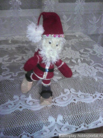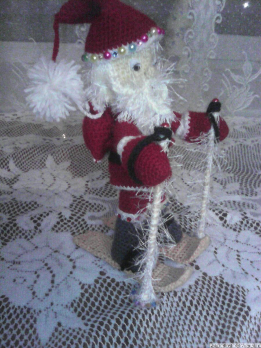 Дед Мороз ростом 20 см. Связан из акрила, наполнитель холофайберЛыжи из алюминия и хлопковой пряжи.На проволочном каркасе. Хорошо стоит и сидит.Станет отличным подарком на новый год!