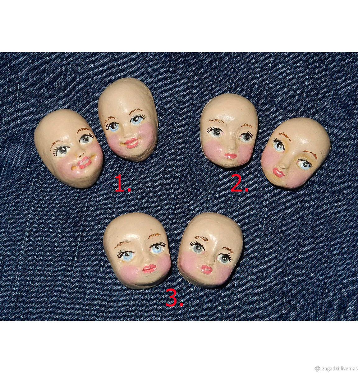Предлагаются лица для ватных игрушек ручной работы . Внутри - полые. Сделаны по типу маски. Материал - полимерная глина Размер - 2,5 х 2 см В наличии - 6 шт. Стоимость за 1 шт.