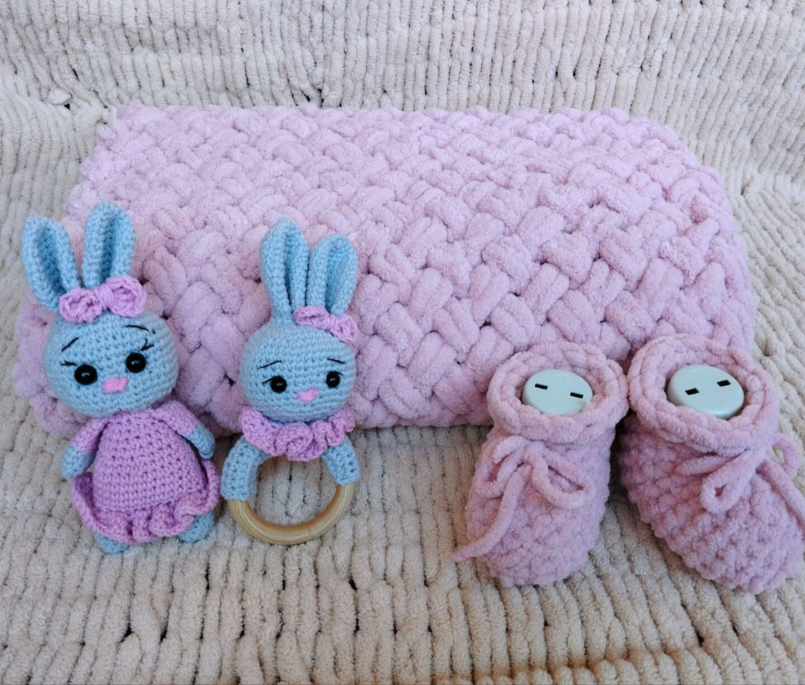 Также можно добавить плед из плюшевой пряжи(85см * 80 см) .