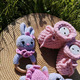 Наполнитель-холофайбер.Глазки на безопасном креплении. Высота игрушек 18 и 19 см. Внутри погремушки - гремелка, шумит негромко.