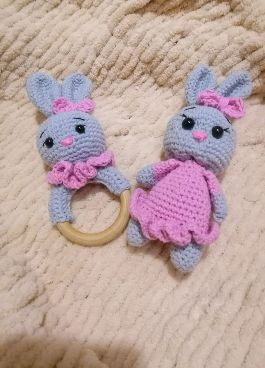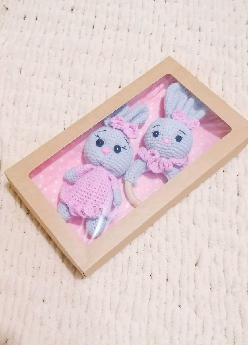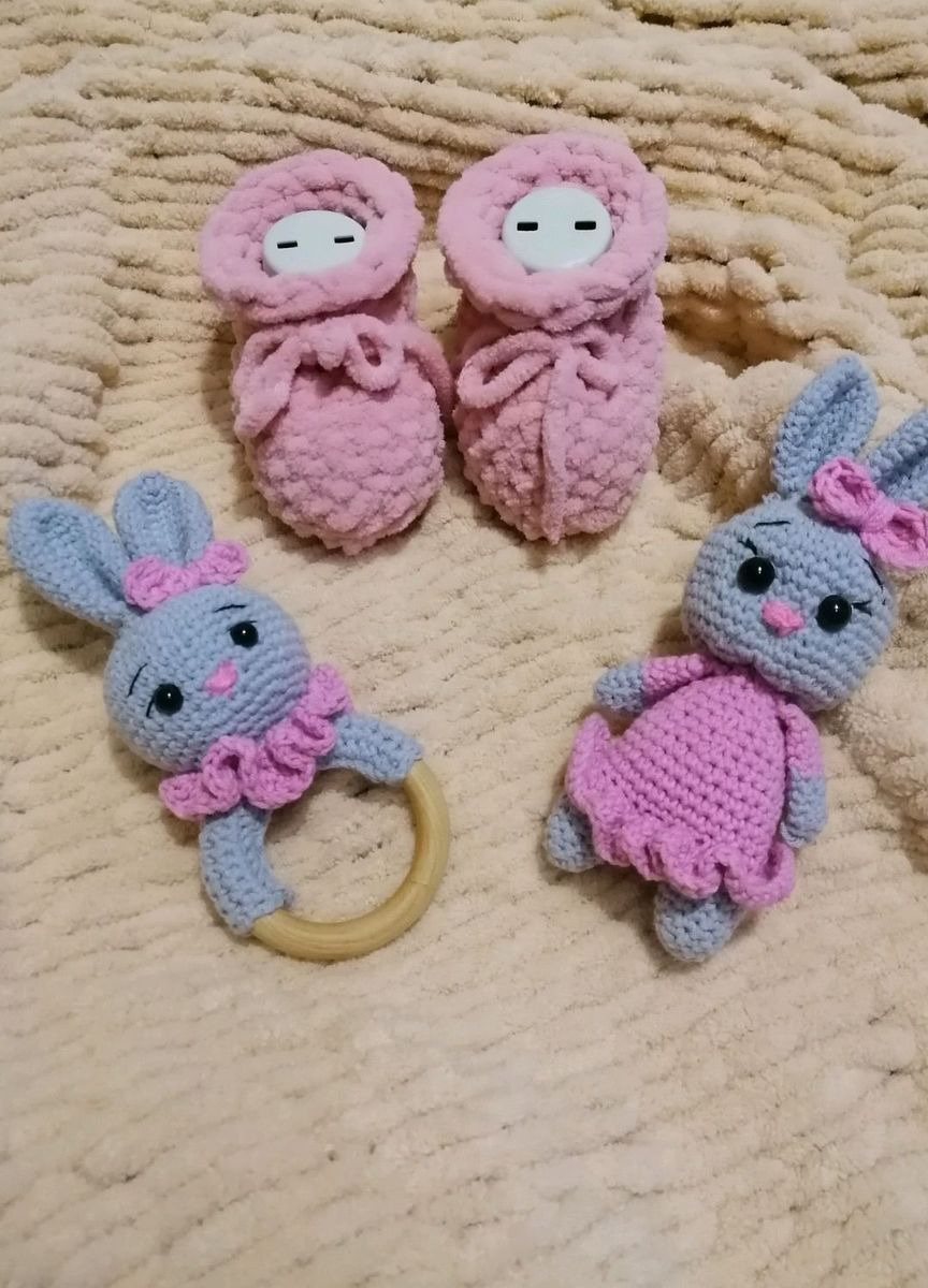 Погремушка-18см, диаметр кольца 7 см Игрушка - 19см Пинетки-11см