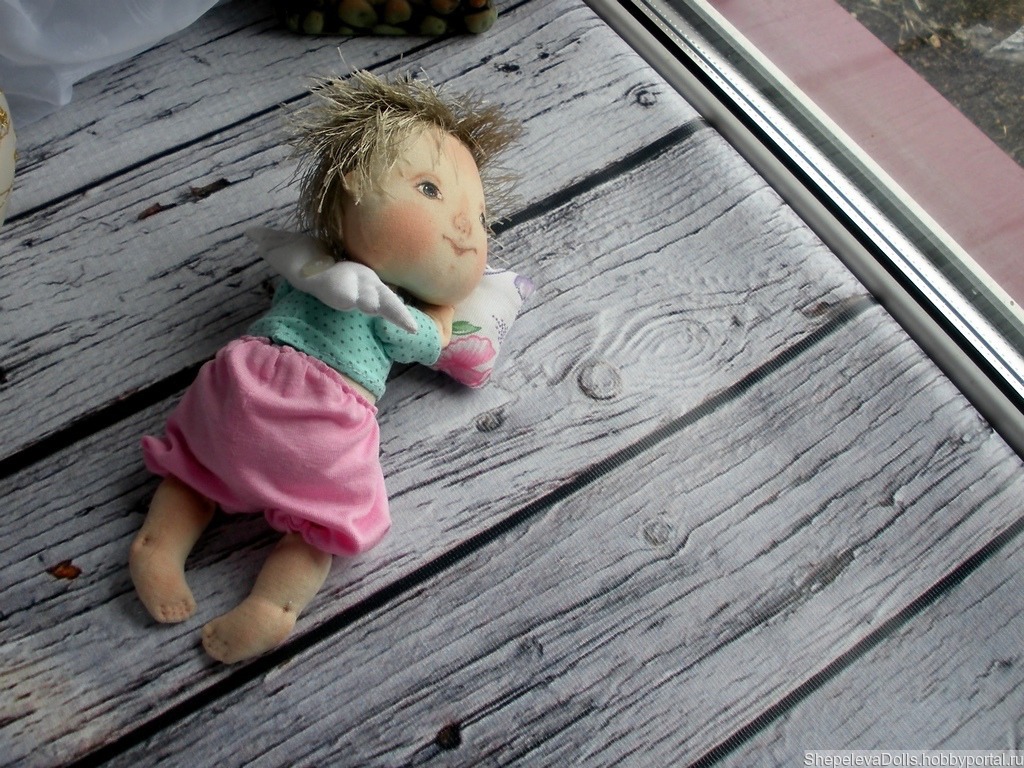 Рост готового Ангелочка 21 см, сидя 15 см.