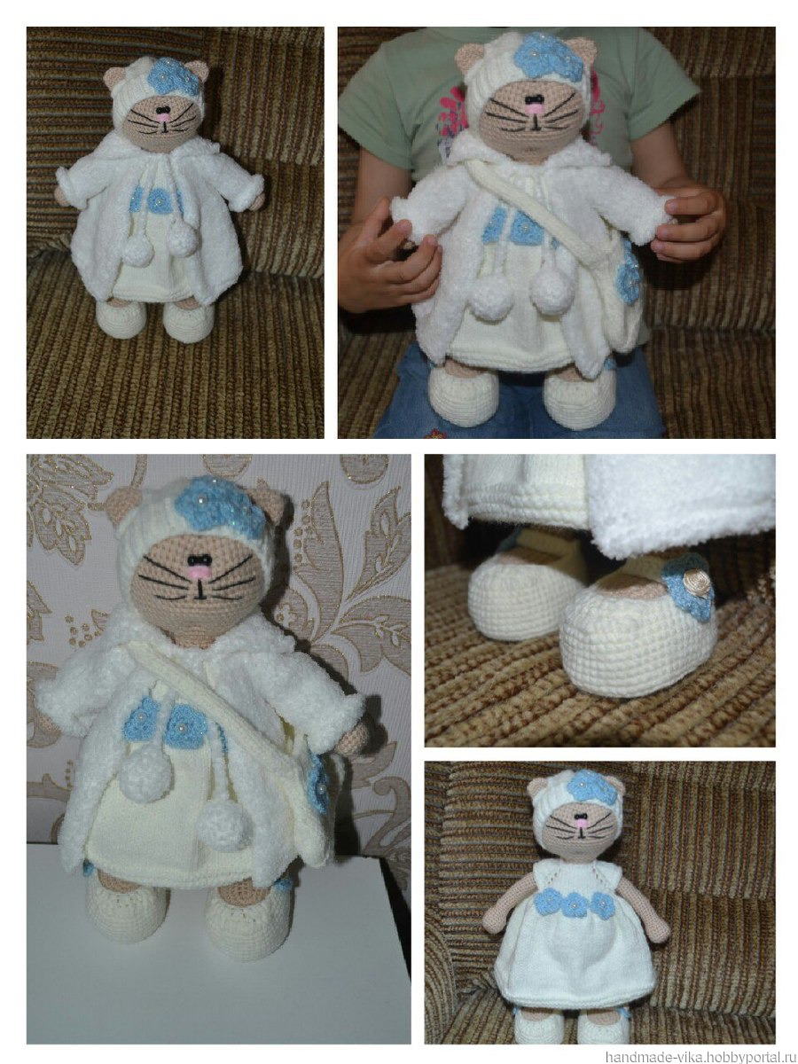 Очаровательная кошечка в белой шубке, ростом 29 см, в наличии и на заказ. Такая игрушка станет отличным подарком на любой праздник и украсит ваш интерьер!