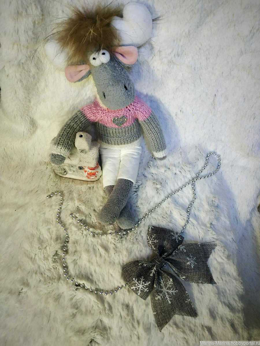 Милый забавный Лосик станет отличным подарком для ваших родных и близких и прекрасным украшением интерьера в предстоящие праздники, и порадует любого ценителя игрушек ручной работы.