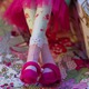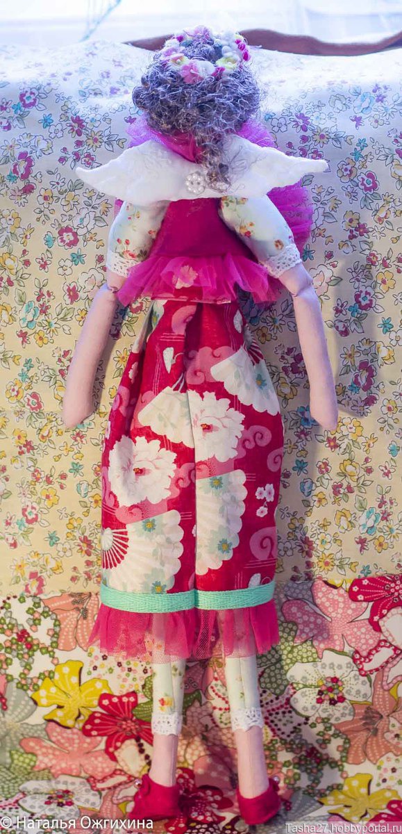 Интерьерная текстильная кукла. Волосы сделаны из атласных лент. В работе использован хлопок, фетр, бусины.