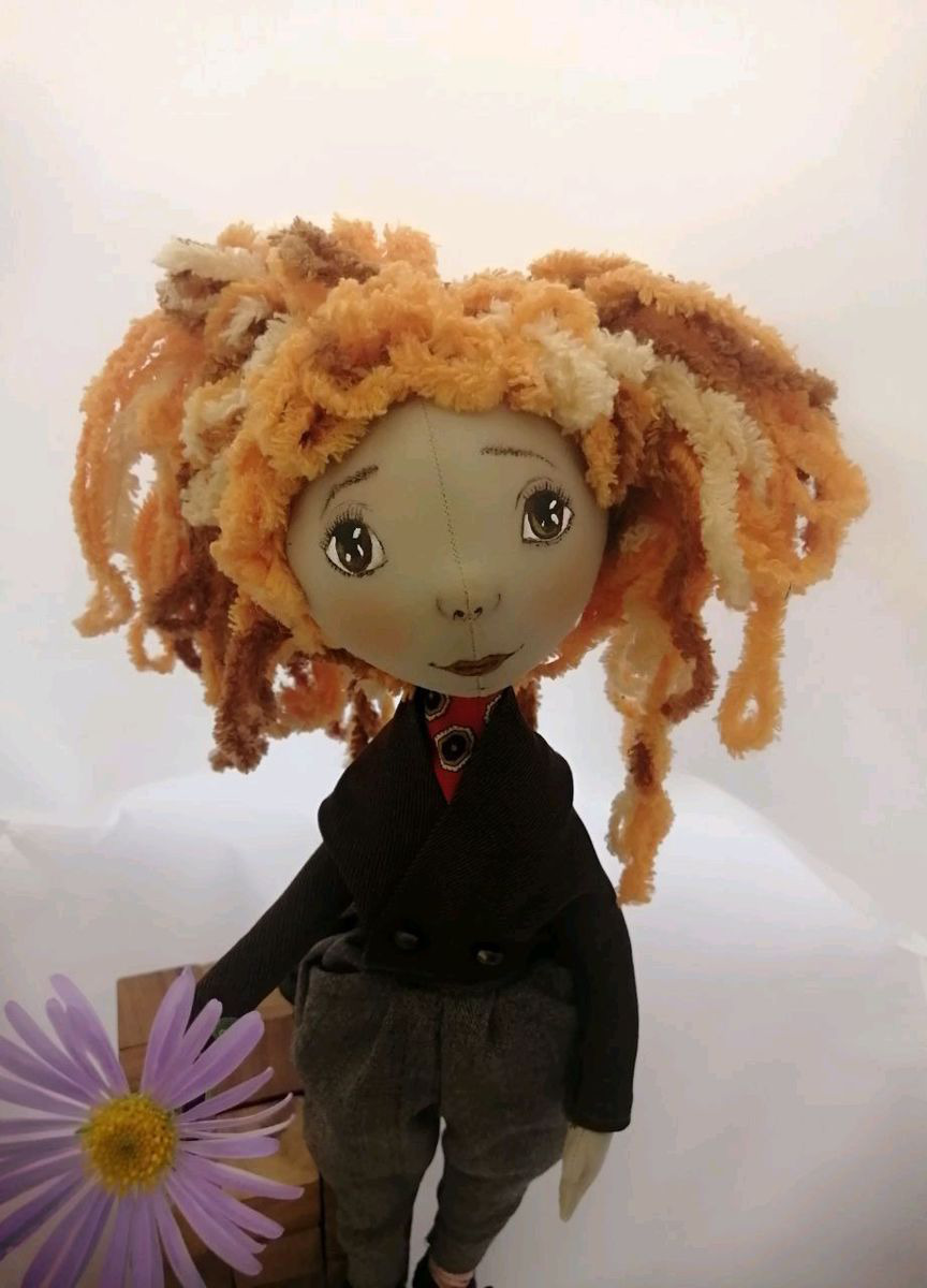 Куколка на проволочном каркасе и можно придавать статичные положения телу.отлично самостоятельно стоит, сидит. Одежда съемная. Личико покрыто лаком- фиксатором. Ботинки из кожи.Придёт в подарочной коробке.