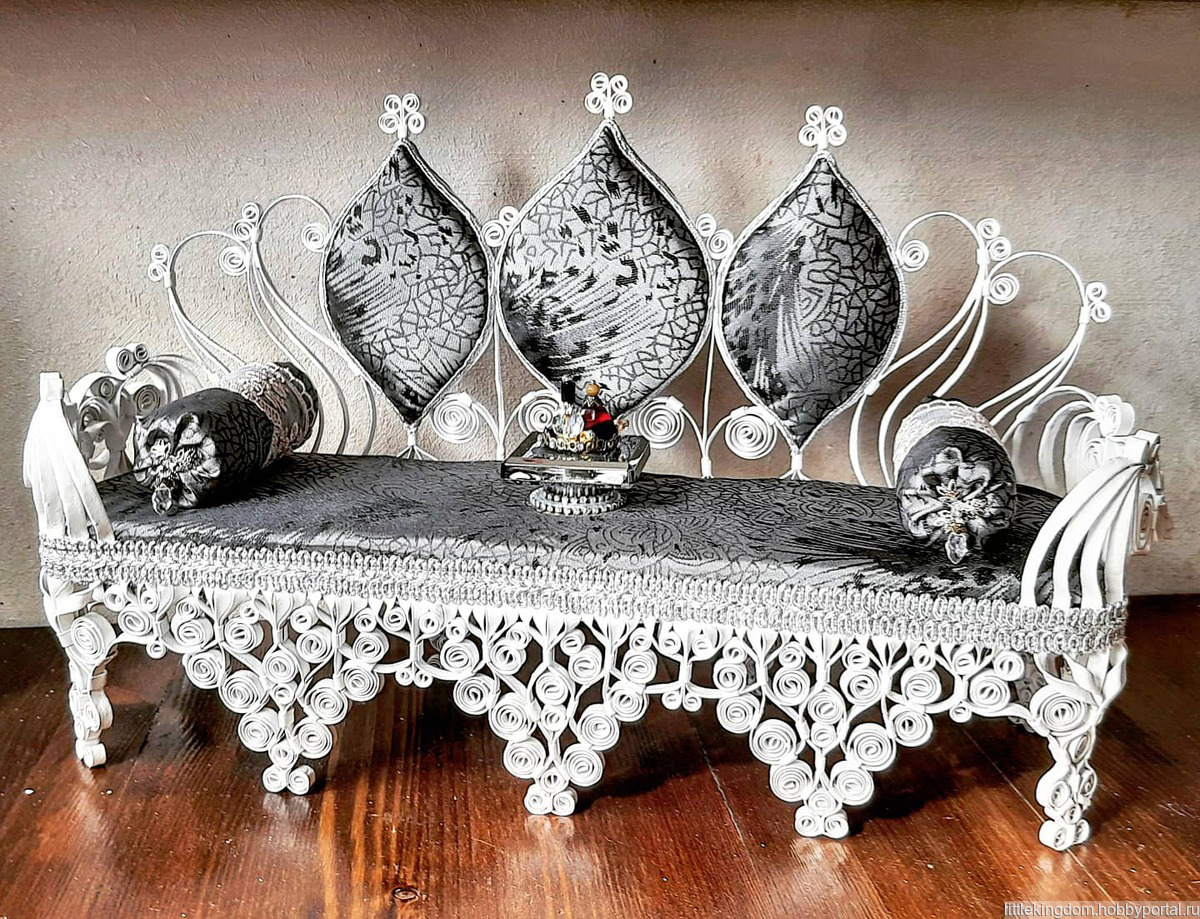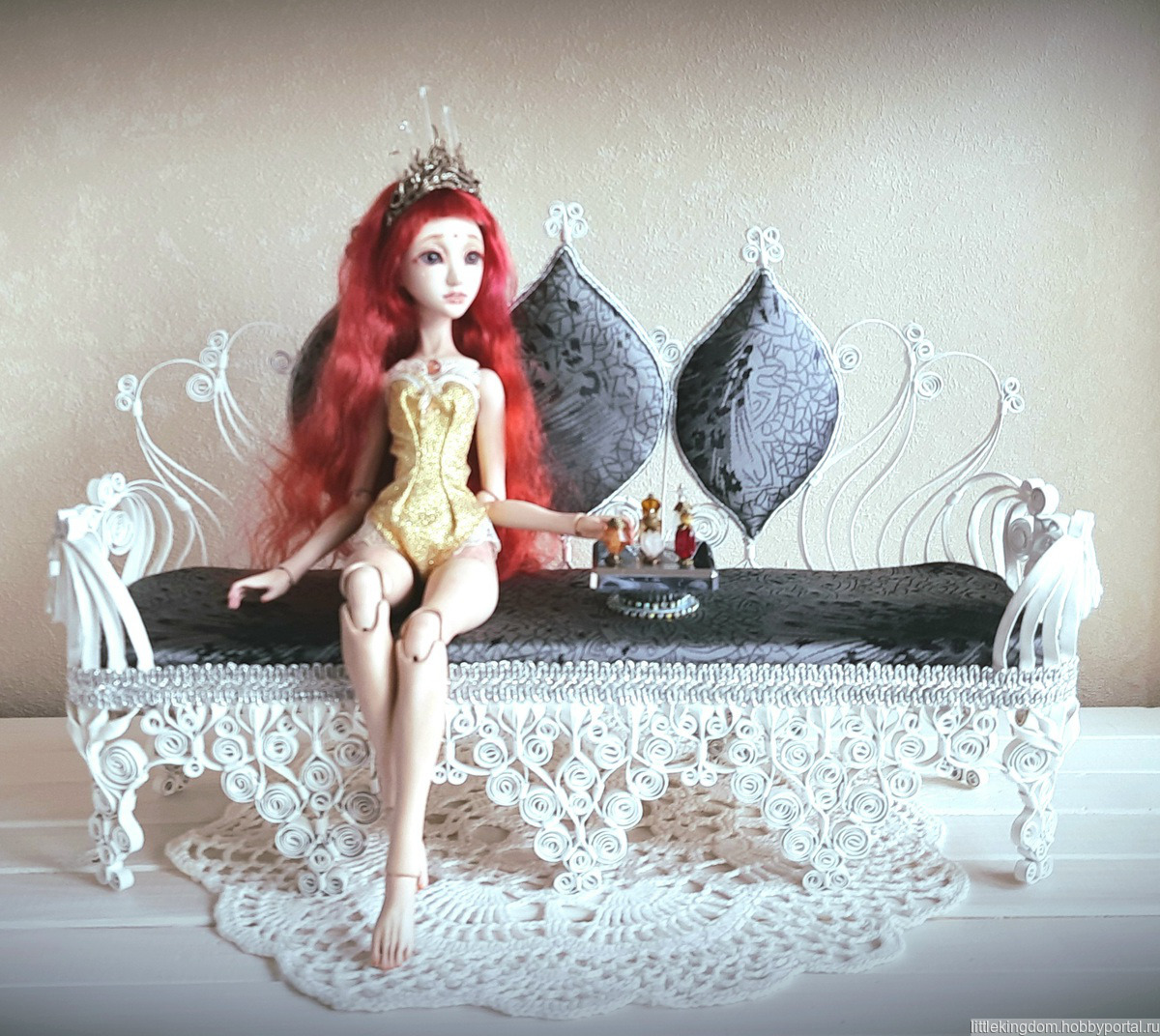 Этот диван обязательно будет радовать хозяйку и удивлять её гостей, впишется в любой интерьер и станет великолепным дополнением для композиции с авторской куклой.
