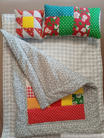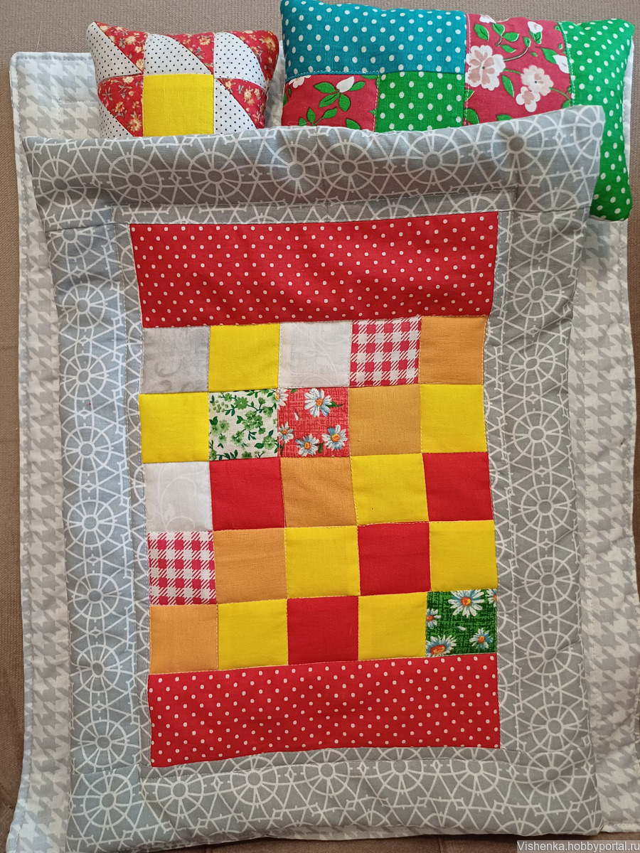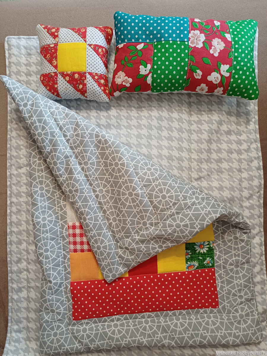 Комплект для кукол - матрас 38х48 см, одеялко 30х40 и 2 подушки 10х10 и 11х20см.