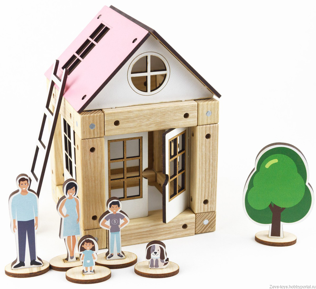 Деревянный конструктор «Pink house» на 44 деталей имеет такие положительные особенности: