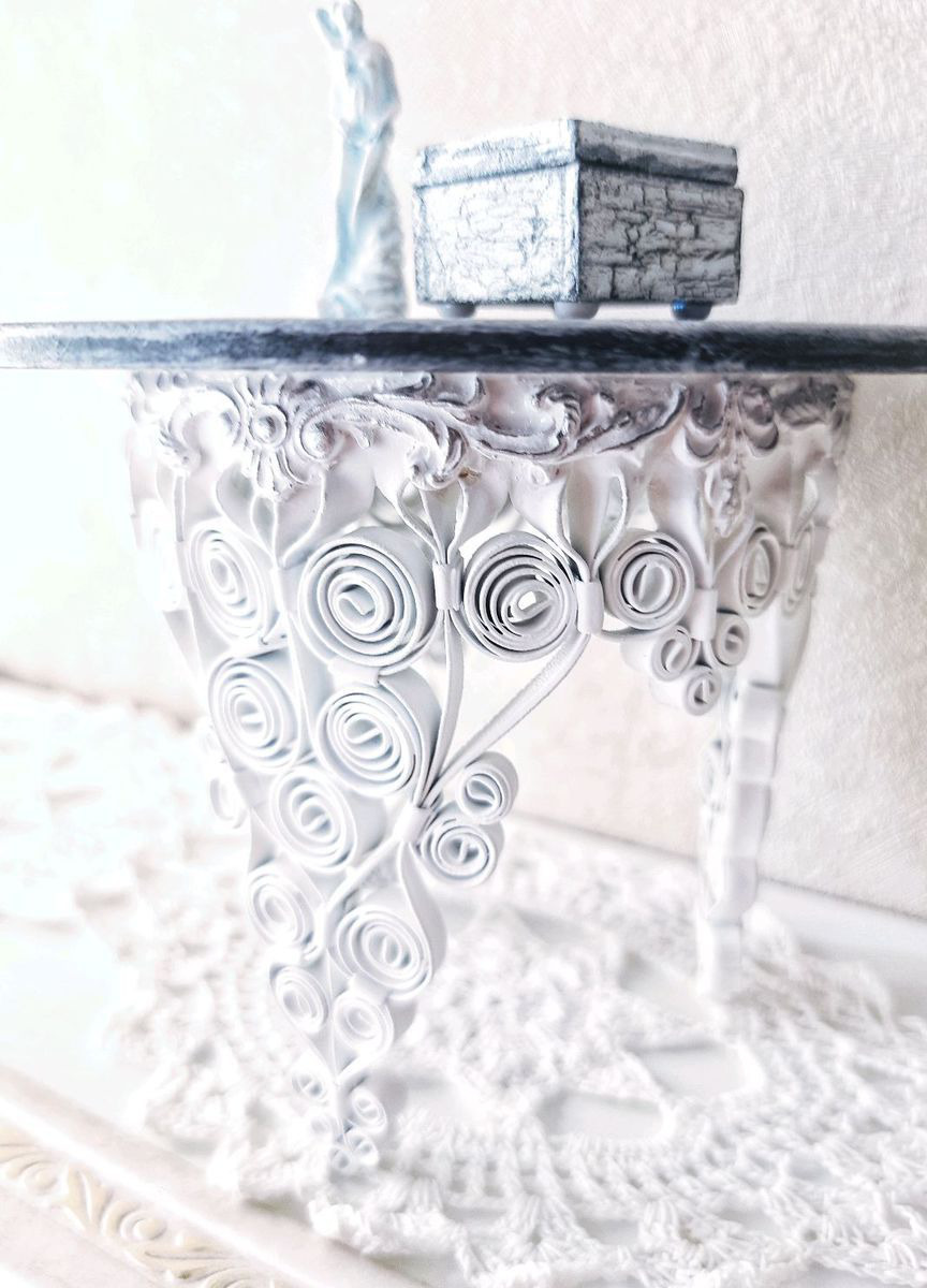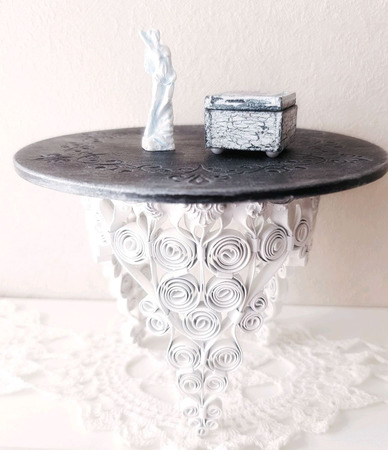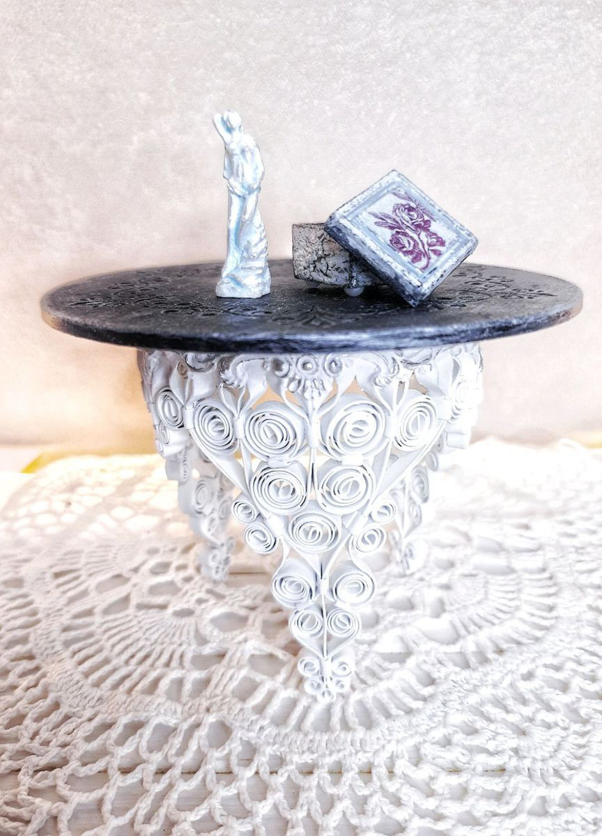 черно-белый, столик, стол для куклы, филигрань, кукольная мебель, кукольный интерьер, металлическая, Кукольный стол