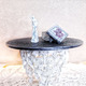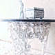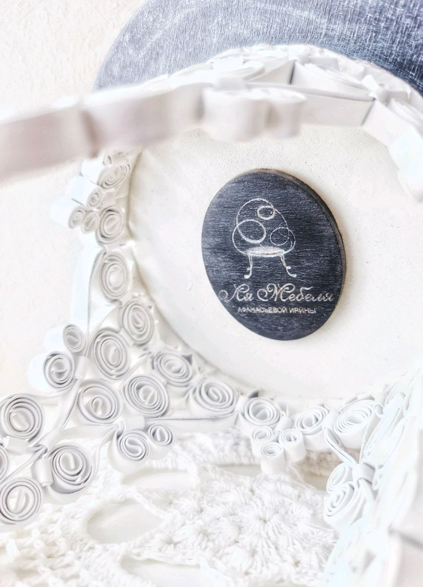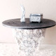 Выдержан в монохромной палитре. Столешница украшена гравировкой. Под столешницей элементы лепнины,тонированные серебряным акрилом.