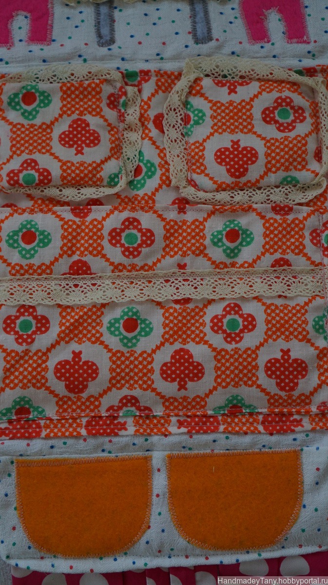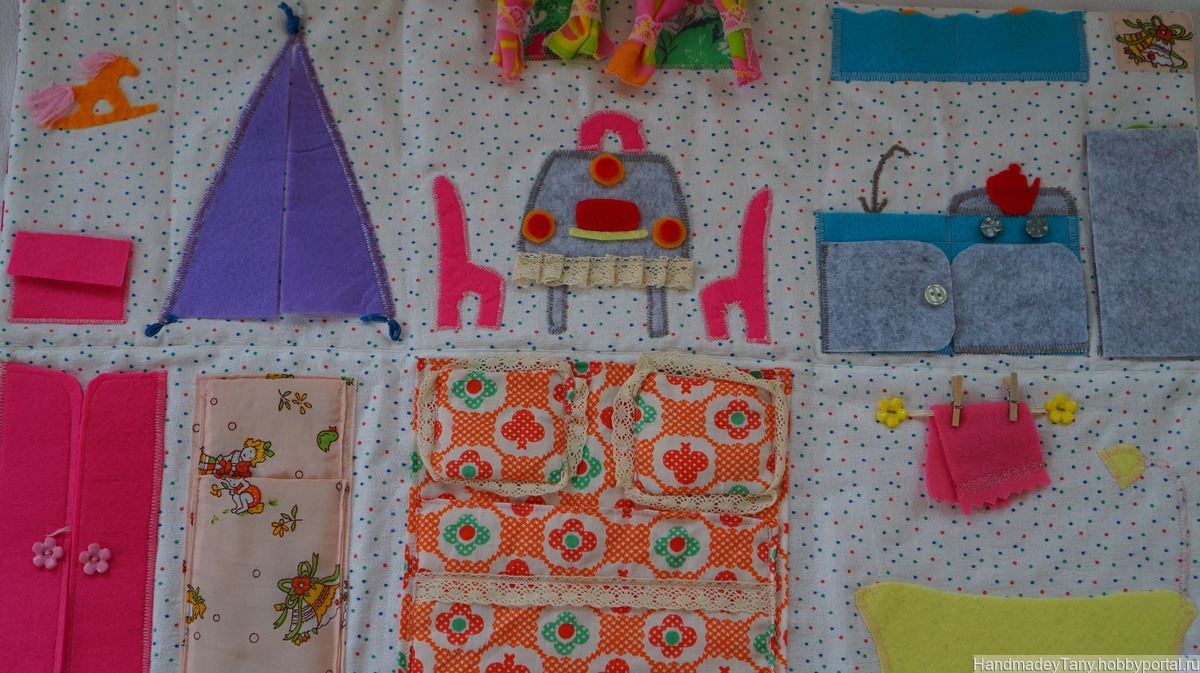 Замечательный развивающий домик для ребенка, новый! Прекрасный подарок на Новый год или день рождения! Все из натуральных тканей, для детей от 3 лет. Все шкафчики открываются, куколки из фетра, по желанию можете добавить свои, подойдёт для любых кукол ростом около 15 см. Размер домика в развернутом виде 50*60. Можно брать с собой куда угодно! Отправлю почтой.