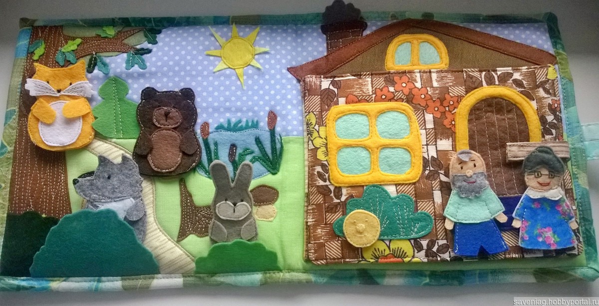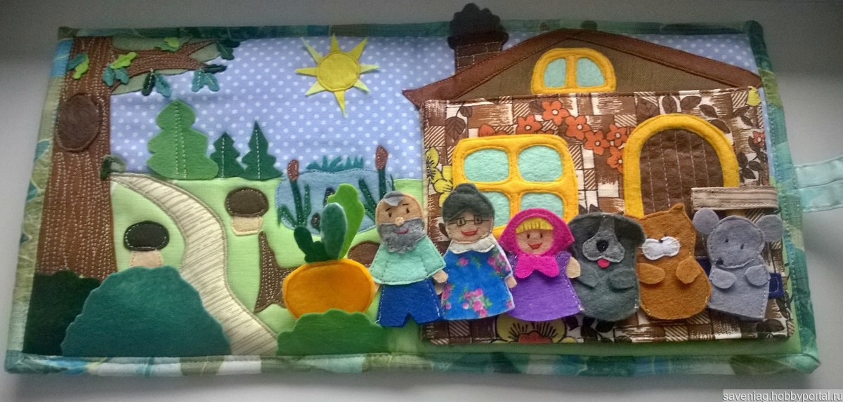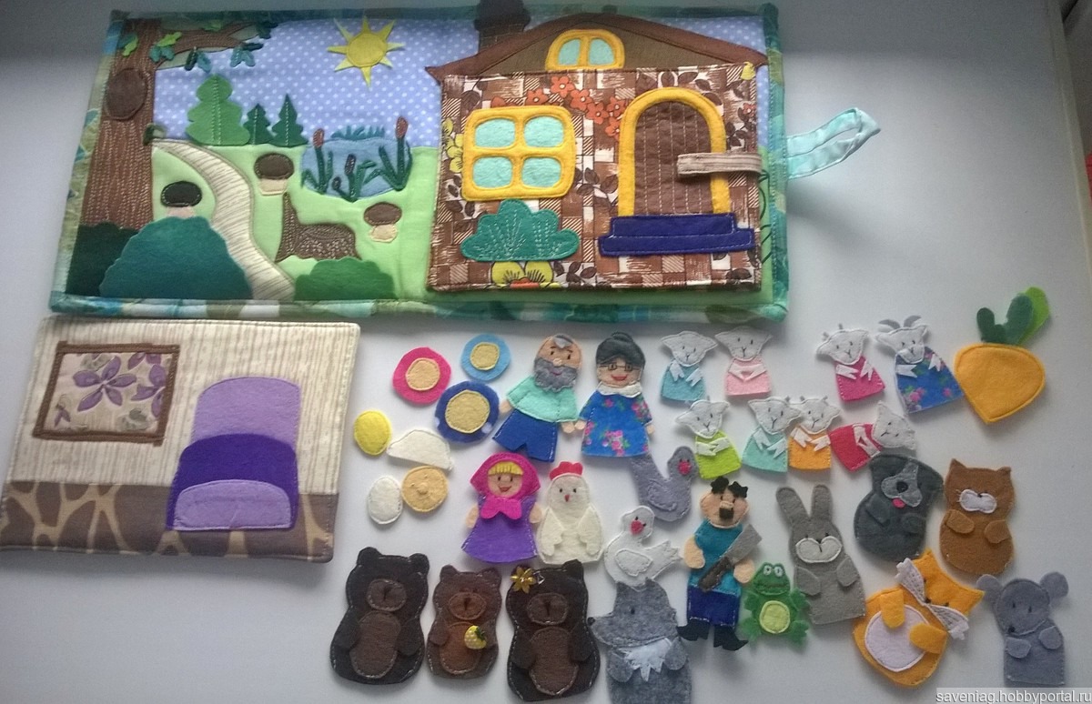 Текстильный планшет предназначен для игры с ребёнком, развивая его актерские способности и речь. Набор состоит из игрового поля и набора сказочных персонажей, которые являются пальчиковыми игрушками. С помощью данного планшета можно разыграть следующие сказки: курочка ряба, теремок, колобок, репка, красная шапочка.