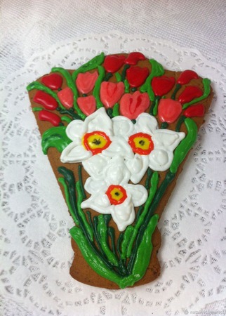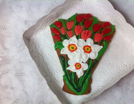 Красивый имбирный пряник Букет цветов - отличный подарок или знак внимания коллегам по работе, учителям, воспитателям детского сада, знакомым или родственникам.