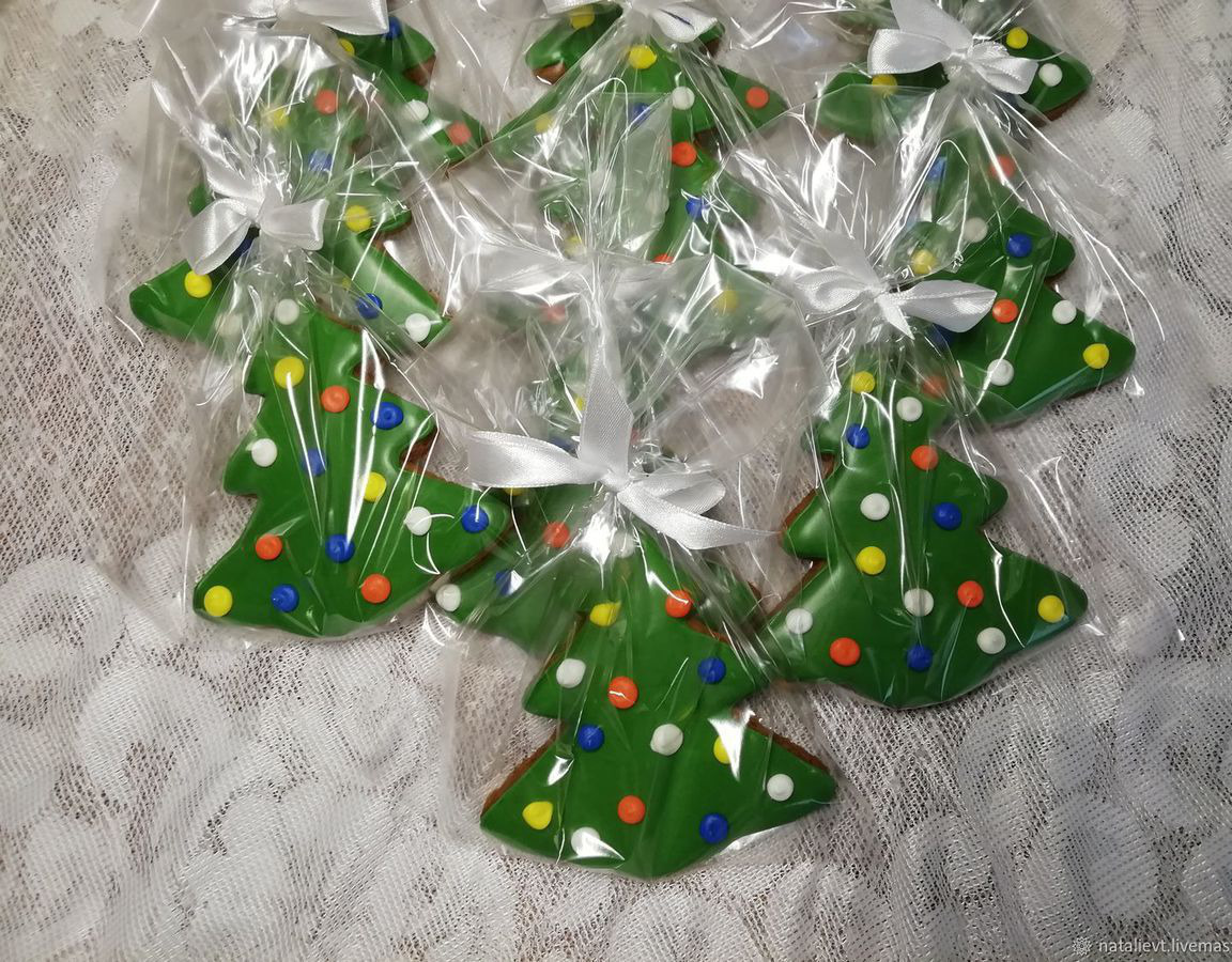 Ароматные имбирные новогодние пряники форме елочек - отличное дополнение праздничного стола или приятный подарок - сувенир. Можно оформить елочки в виде подвесок с ленточкой.
