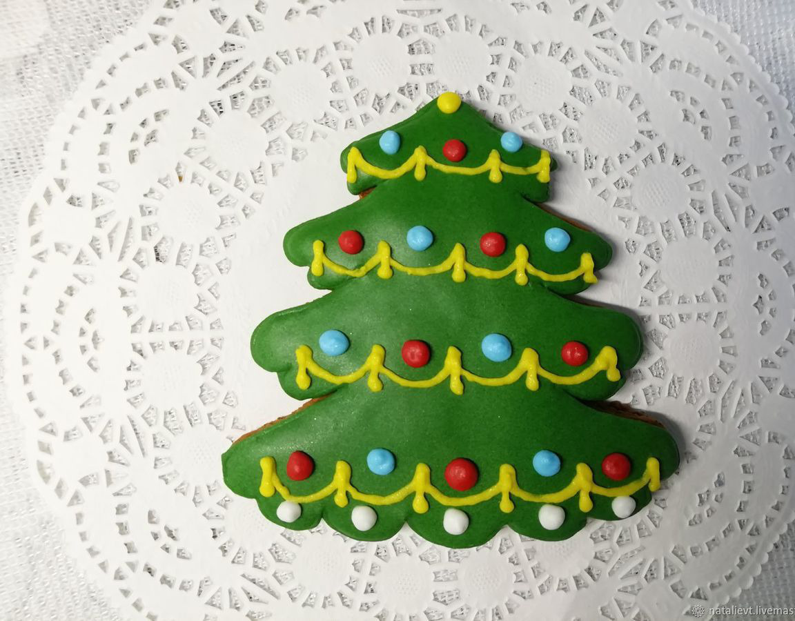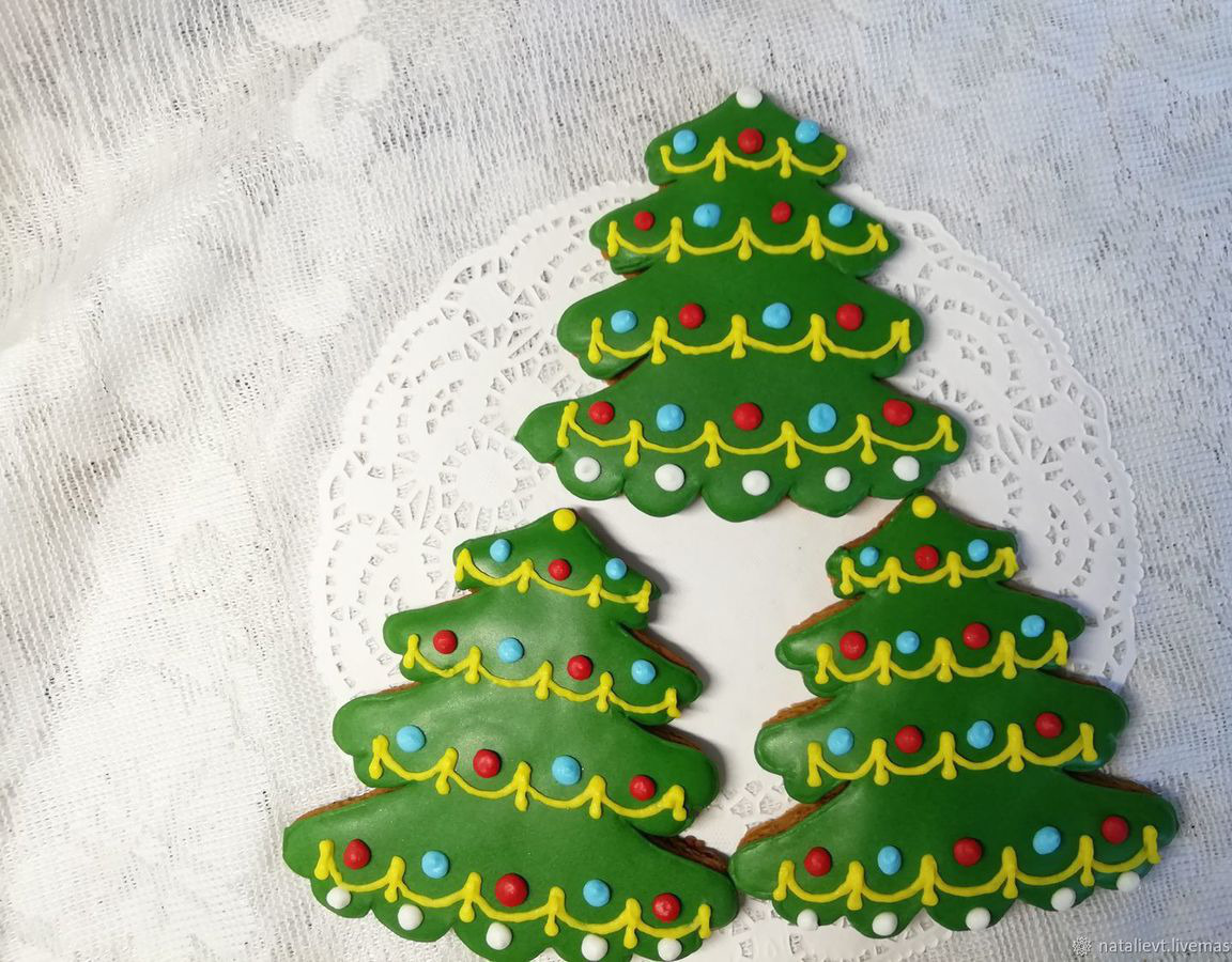 Ароматный имбирный пряник - отличный сувенир и прекрасное украшение новогоднего стола! Большая красивая елочка с росписью новогодними гирляндами и шариками упакована в пакетик с широкой золотистой ленточкой. В наличии 3 елочки. Отправлю сразу.
