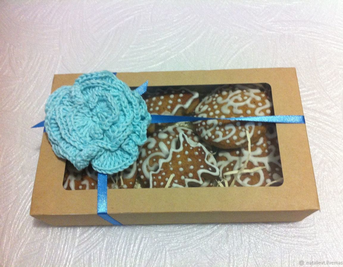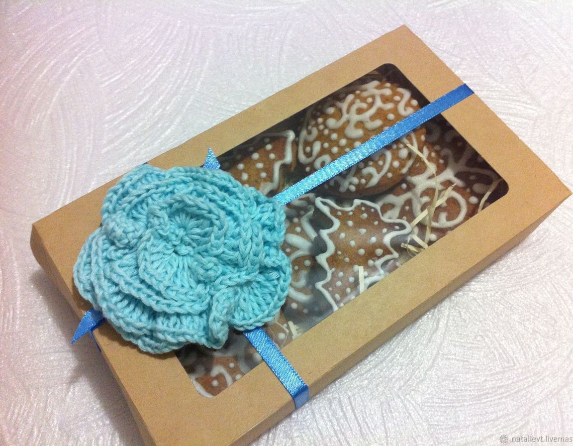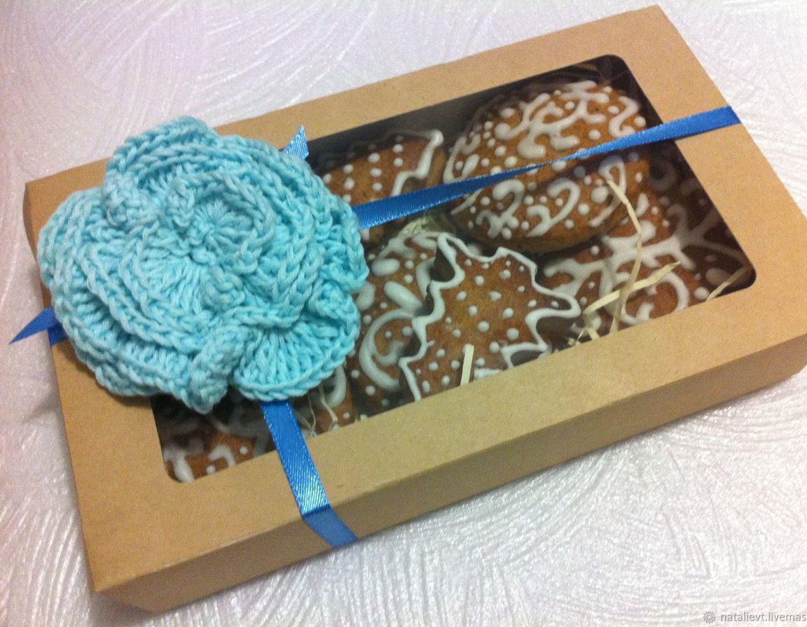 По вашему желанию упакую пряники в коробочку с лентами и вязаным цветочком.