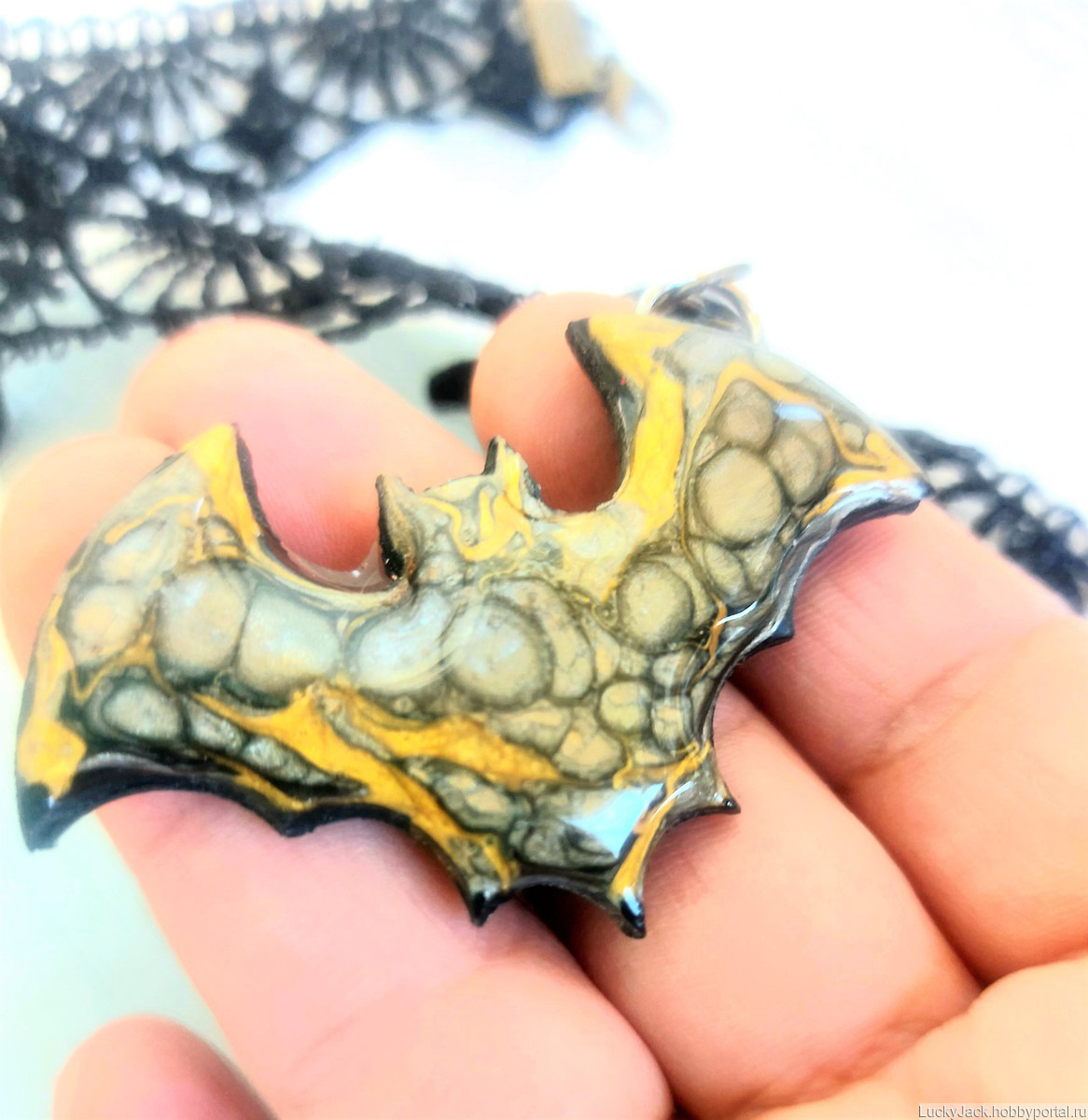 -Подвеска Летучая мышь изготовлена вручную из полимерной глины, покрытой эпоксидной смолой для придания глянцевого блеска.