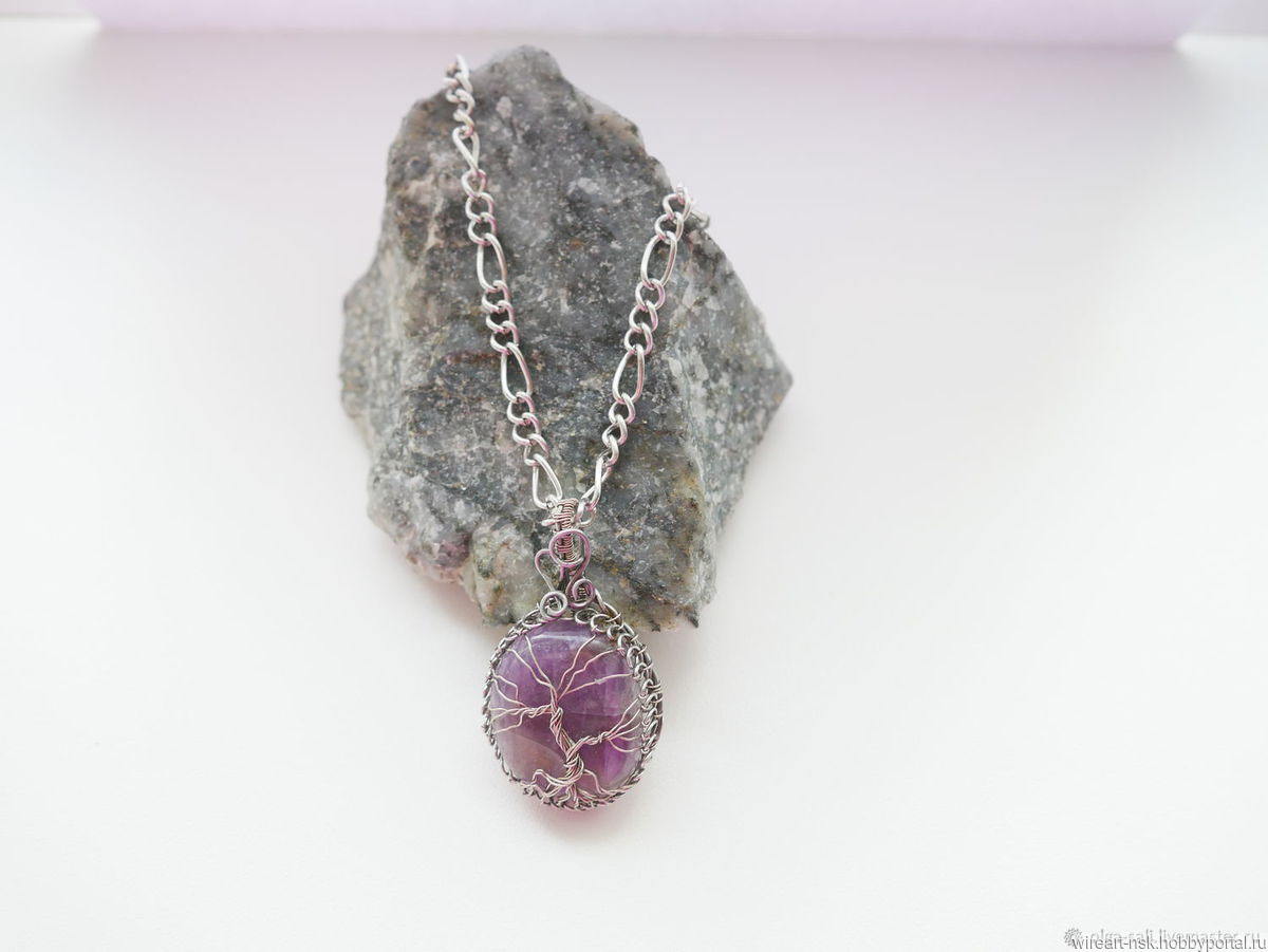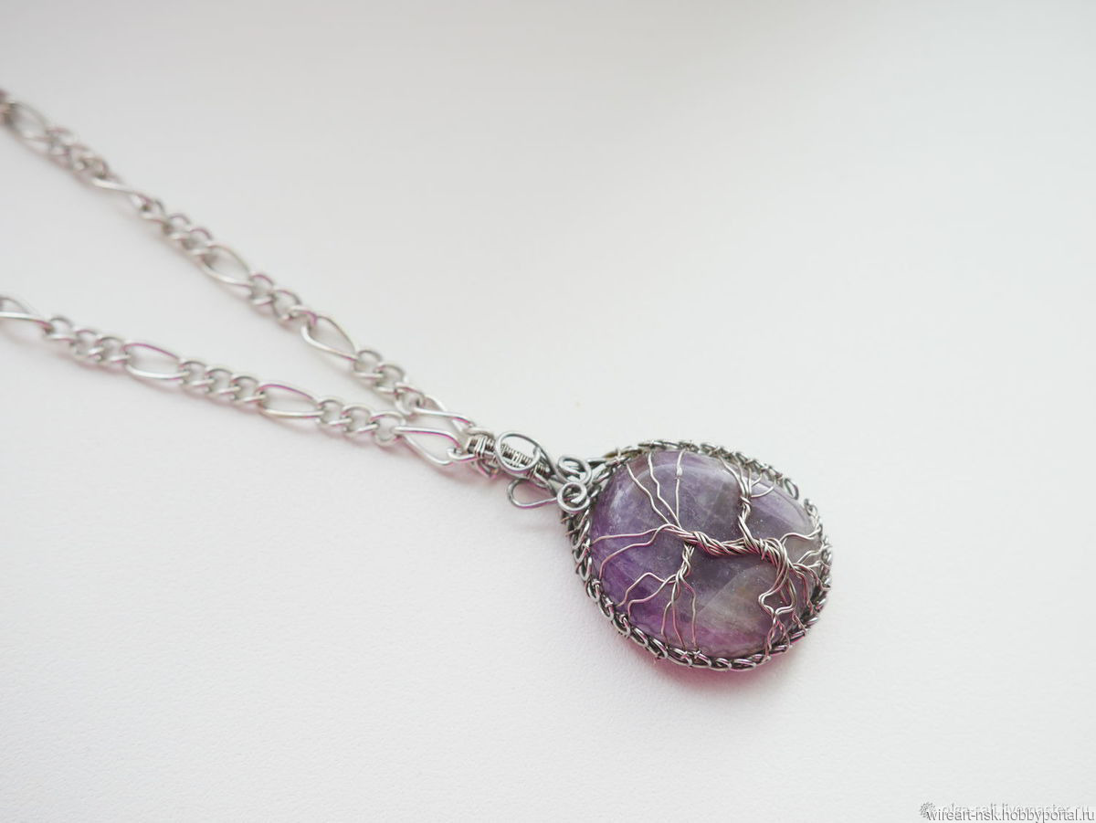 wire wrapping, ювелирные украшения, новосибирск, стиль Бохо, Кулон с фиолетовым камнем, кулон из мельхиора, уникальные украшения