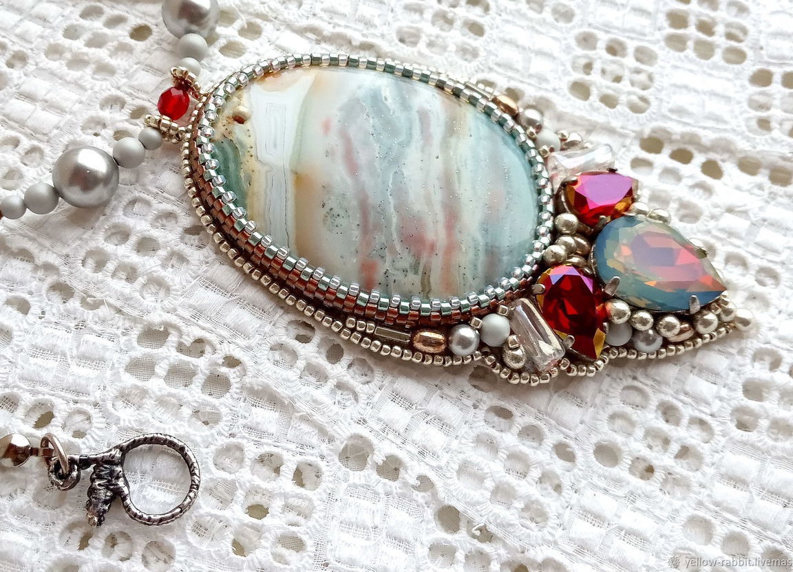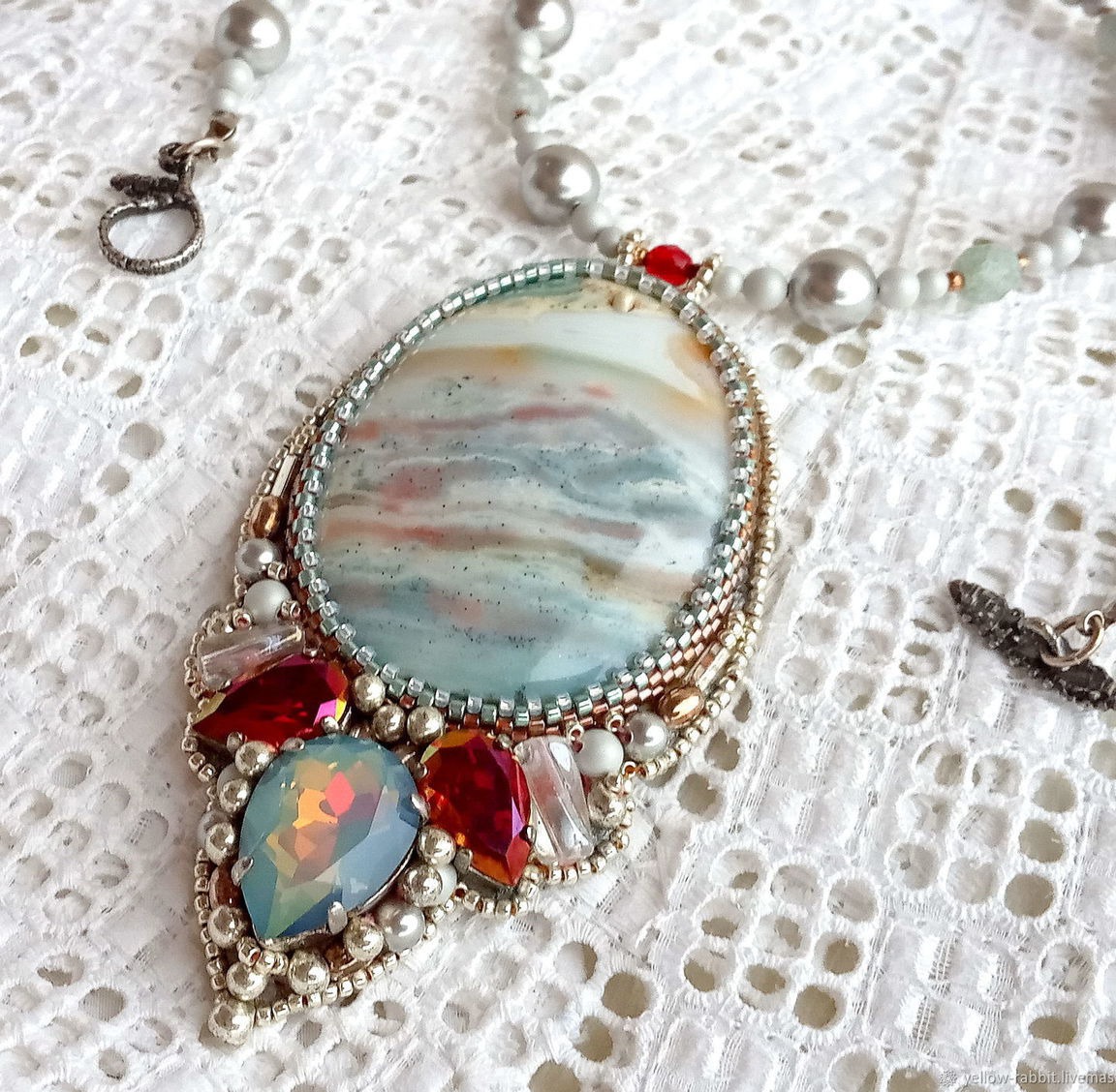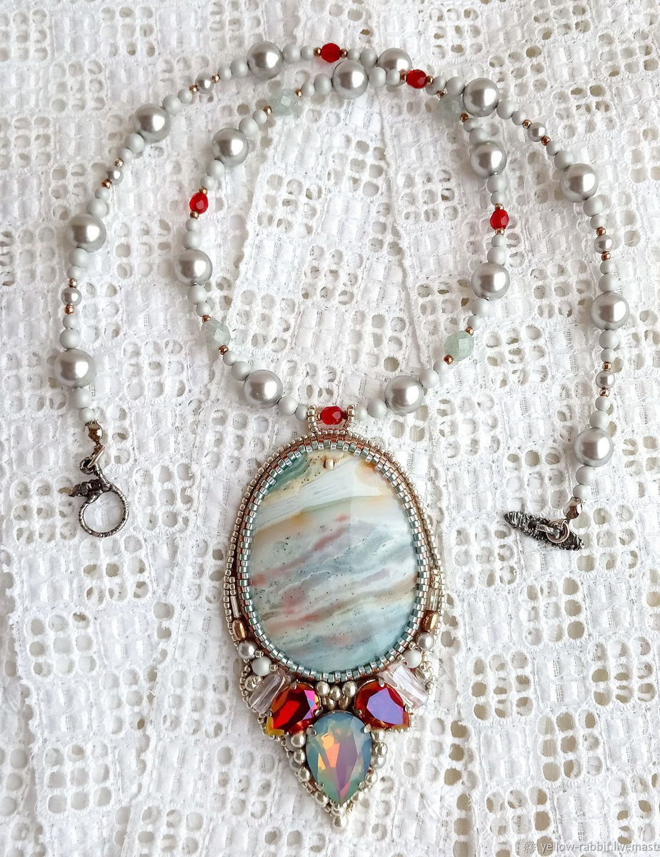 мятный, украшения ручной работы, кулон ручной работы, свадебные украшения, украшения из бисера, украшения с камнями, украшения с жемчугом, украшения на шею, нежные украшения, украшения из натуральных камней, вышитые украшения, кулон со стразами, кулон сваровски, украшения с океанической яшмой, авторские украшения с натуральными камнями