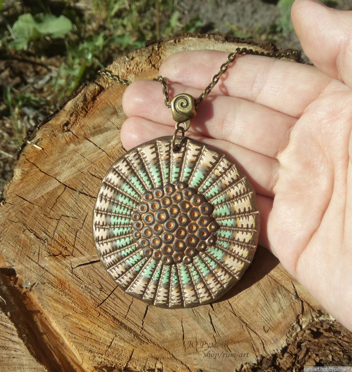 Кулон из полимерной глины "Эрин" прекрасно подойдет к образу в стиле бохо, этно.