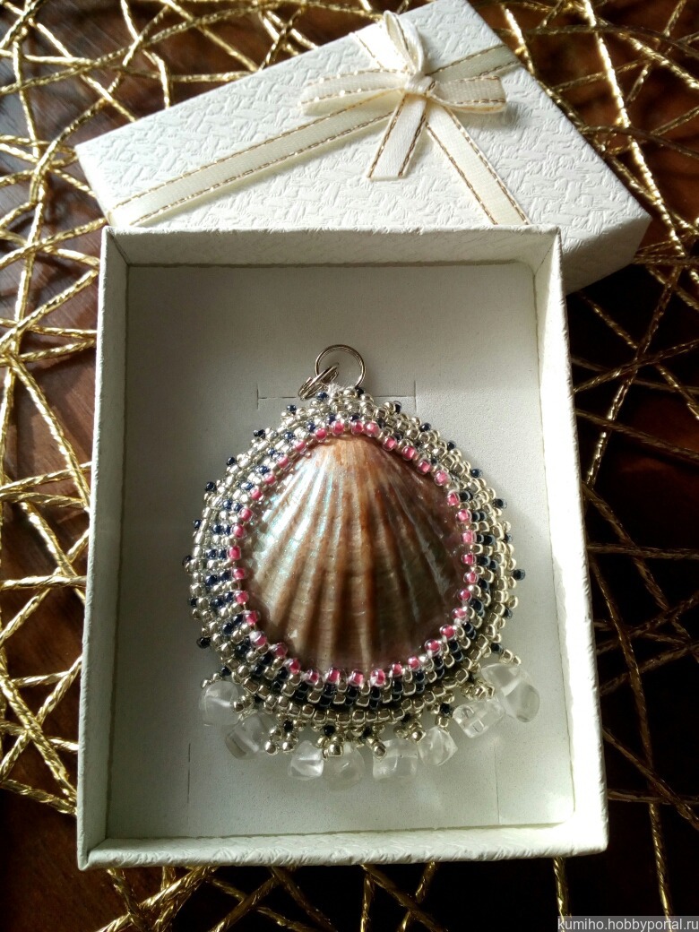 бисер чехия, ракушка натуральная, кожа искусственная, горный хрусталь