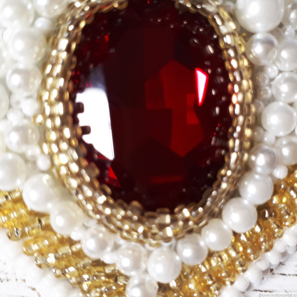 Кулон выполнен из чешского бисера и кристалла "Сваровски". Жемчуг по желанию (стекло, натуральный). Может быть выполнен в виде броши.