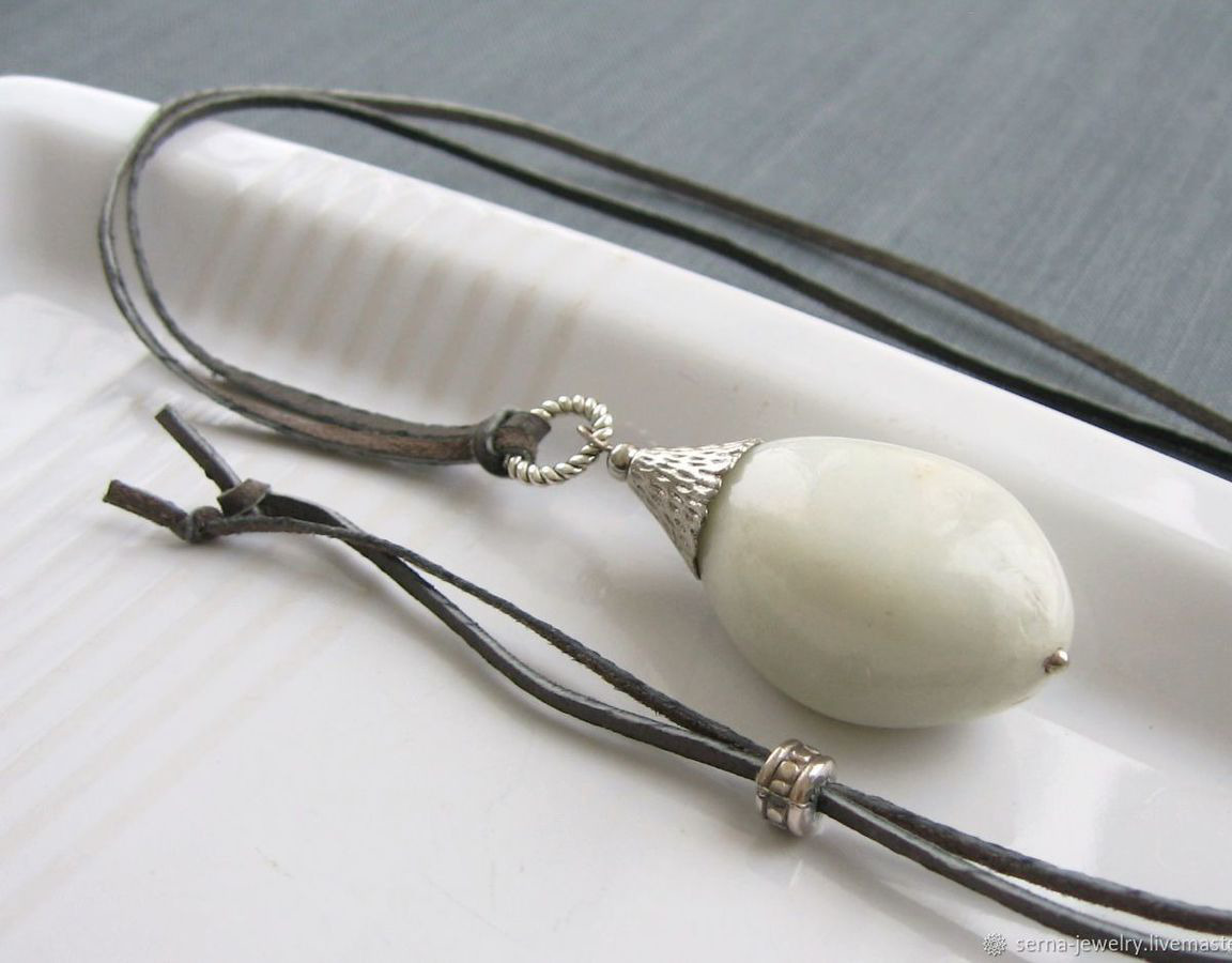 Крупный камень обтекаемой формы удобно ложится в ладонь, используйте кулон в качестве литотерапии. Кальцит природный едва различимого голубого оттенка.