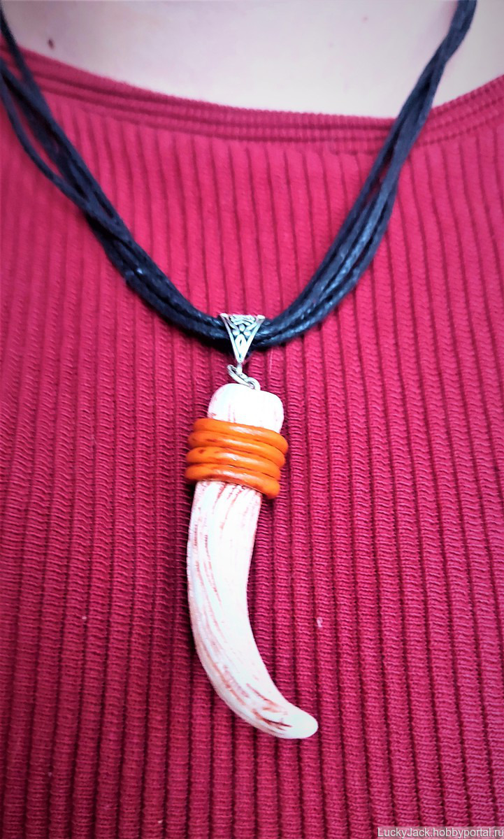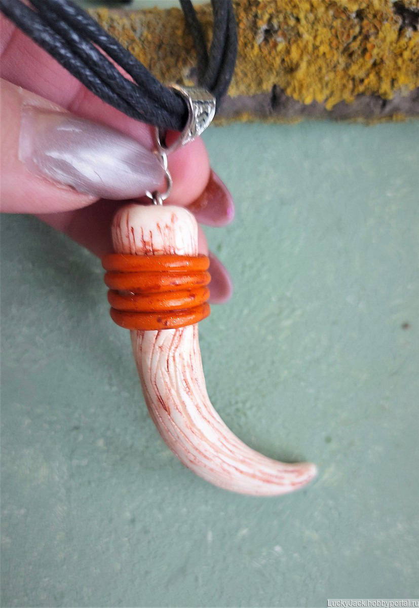 кулон ручной работы, кулон на шнуре, парню, кулон полимерная глина, клык, идея подарка, подарок мужчине мужу, клык волка, кулончик, зубному врачу, зуб в подарок, кулон зуб