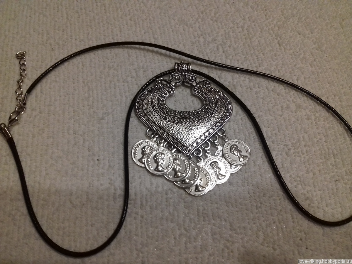Кулон на шнурке с фигурным коннектором и подвесками-монетами
