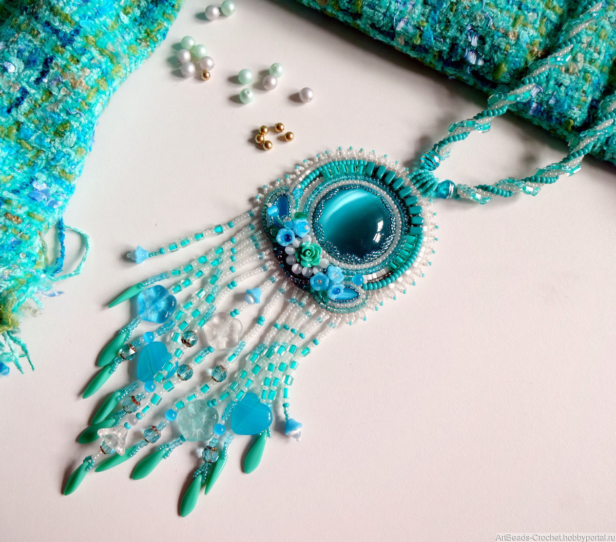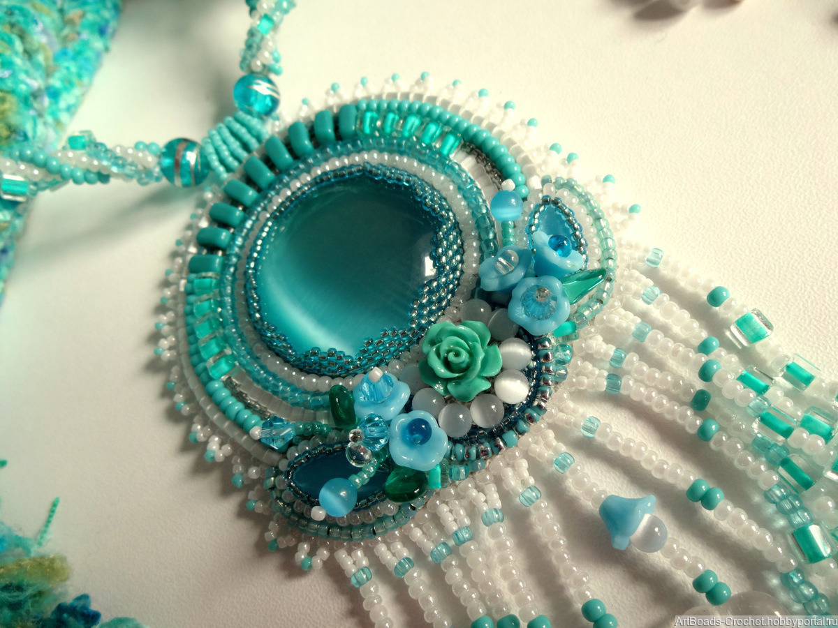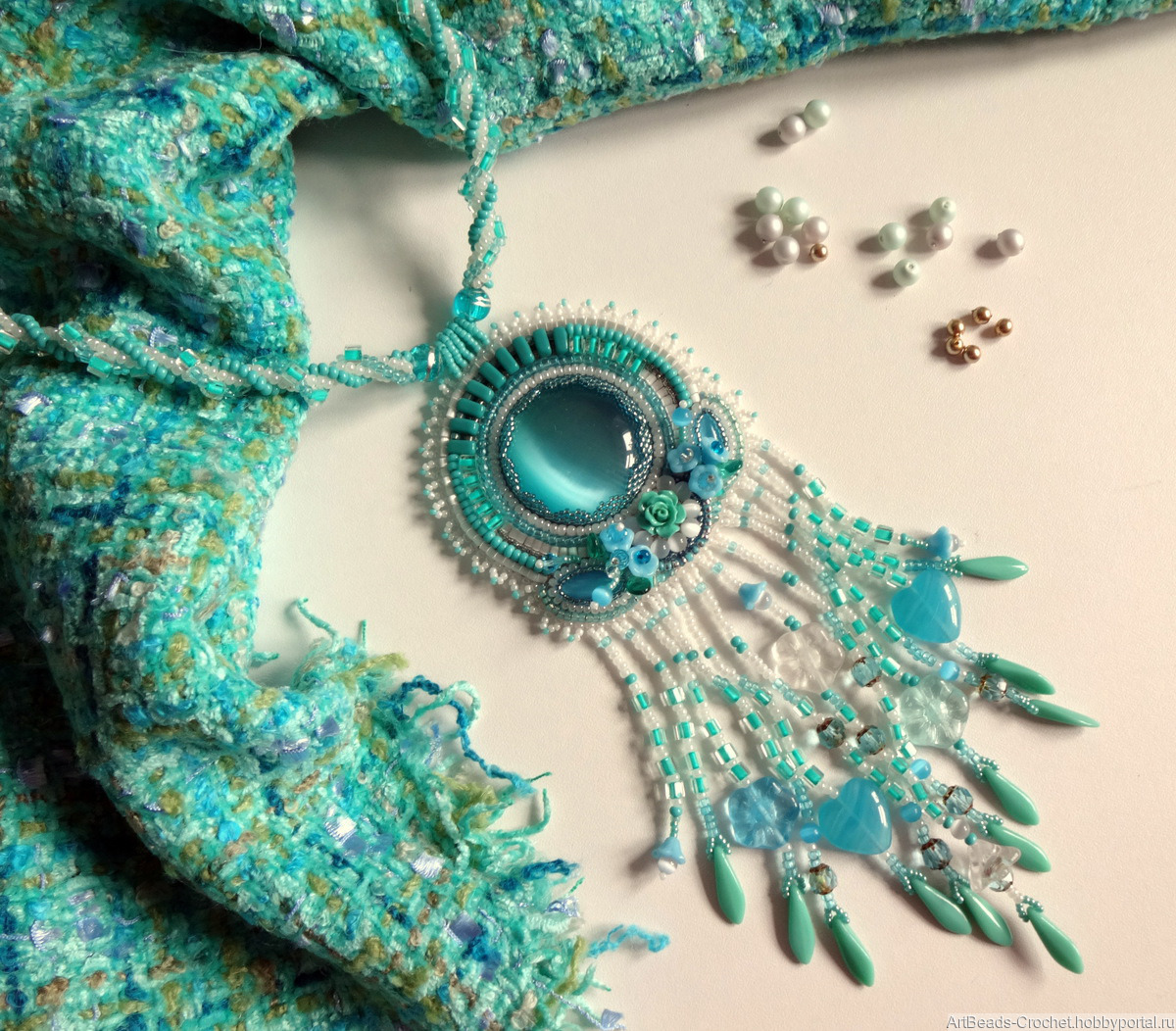 Кулон с кабошоном из стекла - имитация кошачий глаз. Бисер японский и чешский, бусины стеклянные - чешское стекло.