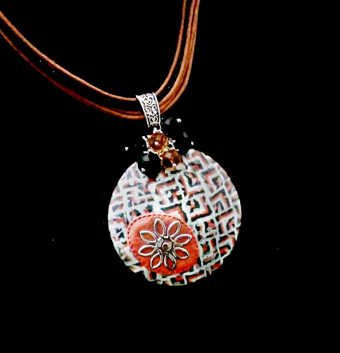 украшение, подвеска, ручная работа, кулон, стильное украшение, handmade, бижутерия ручной работы, авторская ручная работа, авторское украшение, комбинированный, полимерная глина, лабиринт, крупный кулон, кулон на шнуре, pendant, круглый кулон, галина назарова, stylish decoration, полимерные украшения, крупный круглый кулон