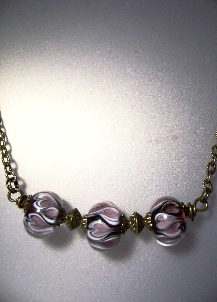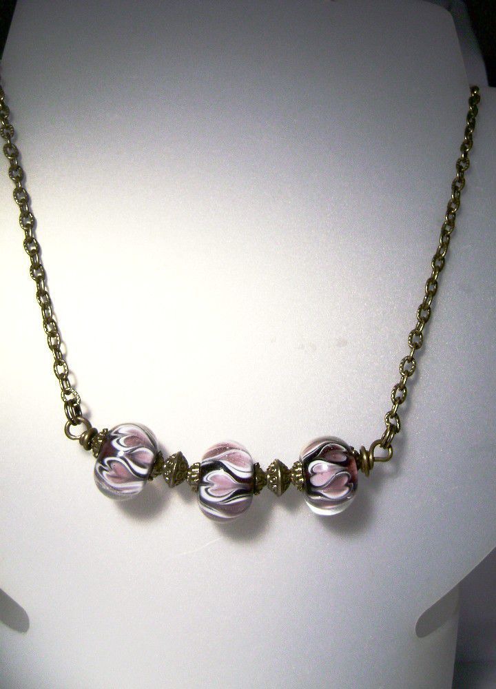 Кулон с цепочкой сделан из стеклянных авторских бусин лэмпворк ручной работы и фурнитуры под бронзу.