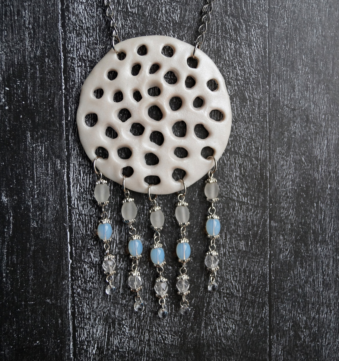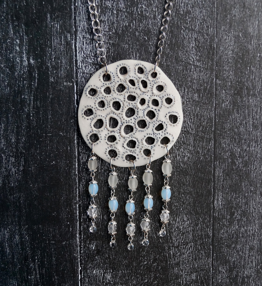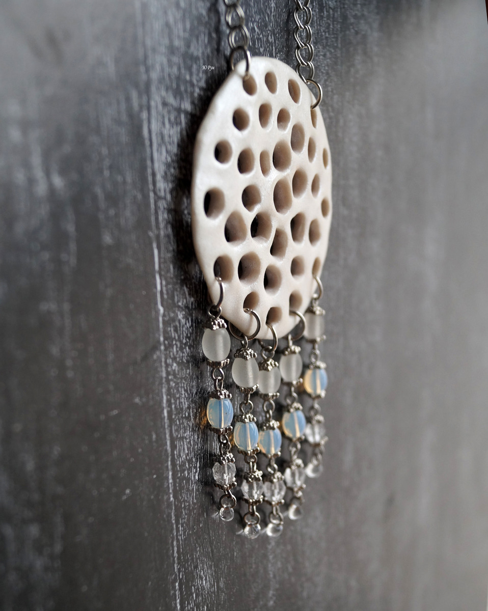 Кулон из полимерной глины "Лунный свет" прекрасно подойдет к образу в стиле бохо, этно.