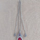 Насыщенный красный кулон в обрамлении серебряных нитей. За счет плотного плетения микромакраме создается впечатление серебряного ювелирного изделия.