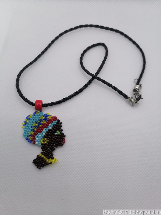 Кулон из бисера на черном экошнуре.