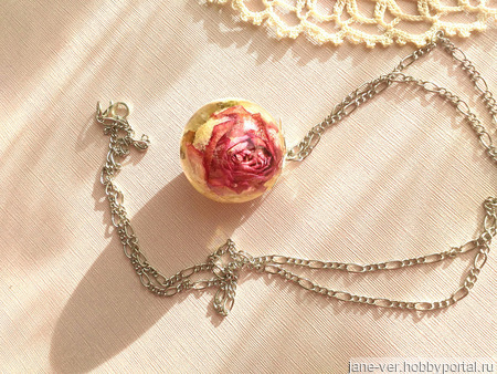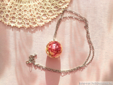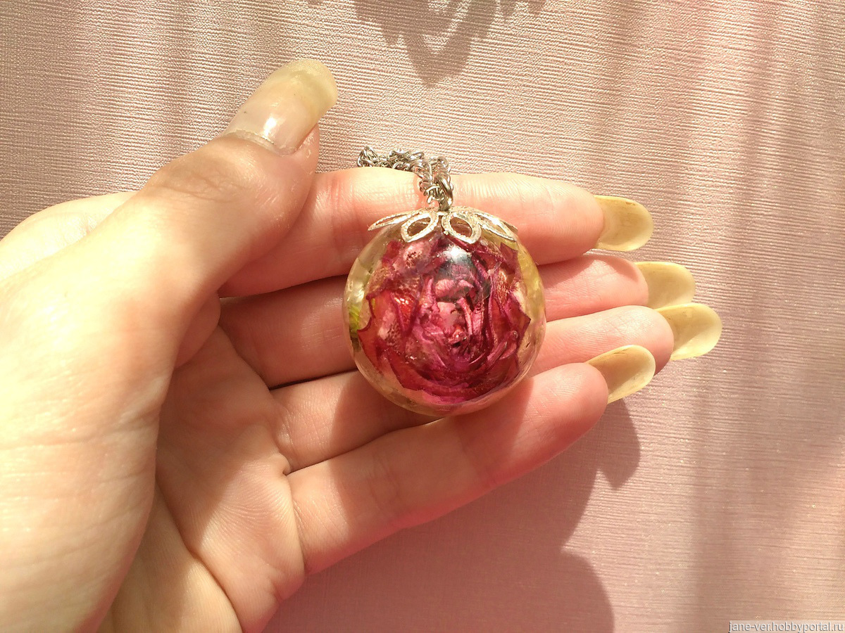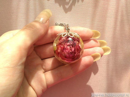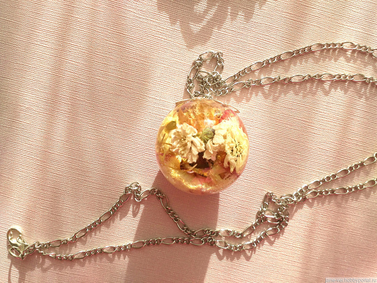 Кулон из эпоксидной смолы и сухоцвета. В диаметре 3 см