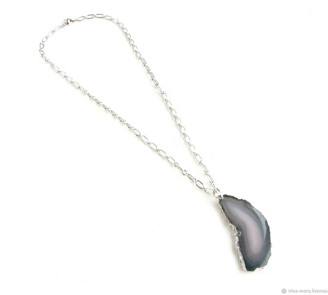 Крупный кулон "Ночь". Серебряный кулон на длиной цепочке. Черный кулон. Серебряная цепочка с кулоном. Прекрасный необычный подарок. Кулон ручной работы. Кулон срез агата. Сильный кулон. Модный кулон. Кулон подвеска. Кулон с камнем. Кулон из камня. Купить кулон.