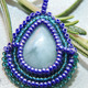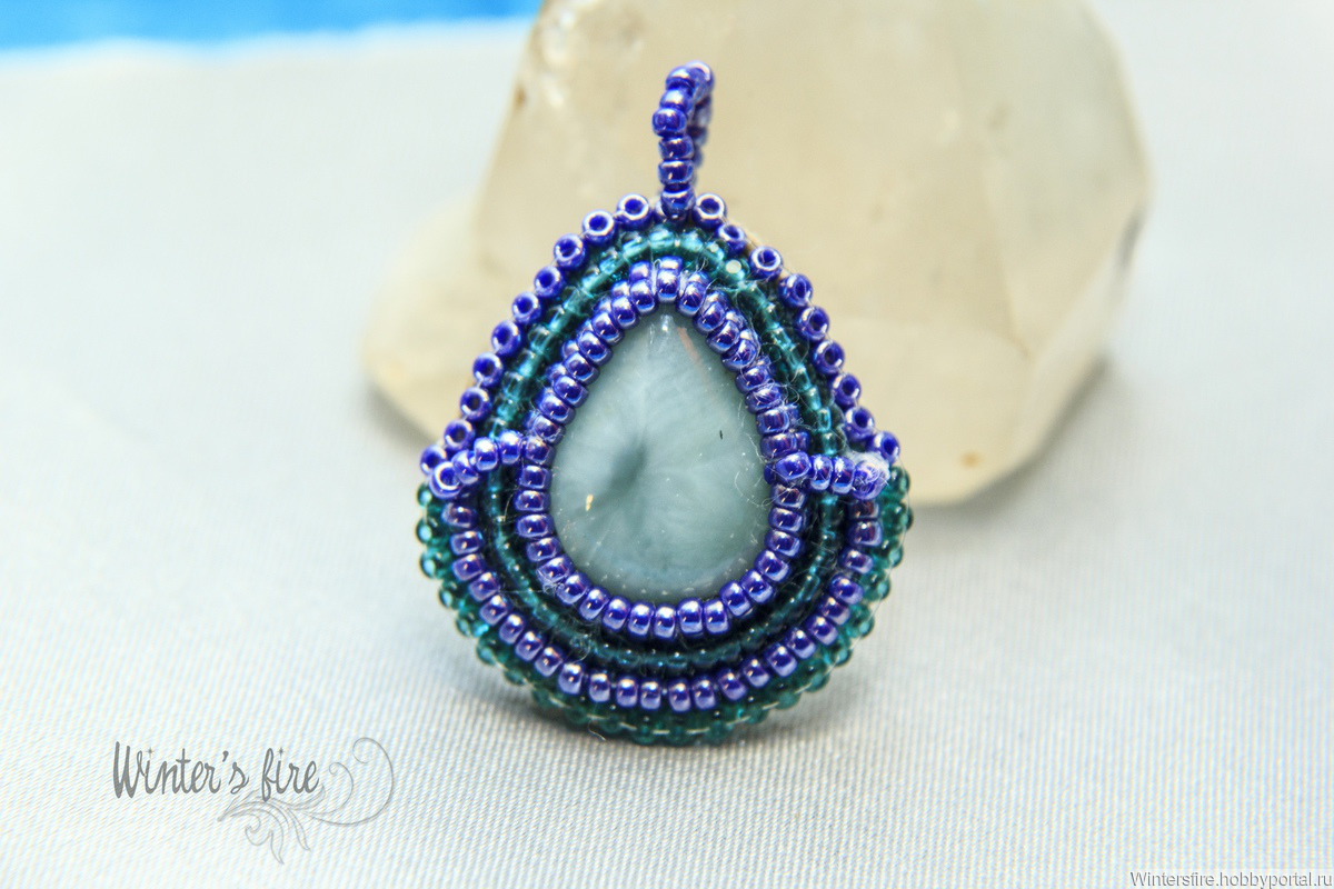 Вышит чешским и японским бисером 15-го размера. Камень- ларимар, почти без рисунка. Задник выполнен из натуральной кожи.