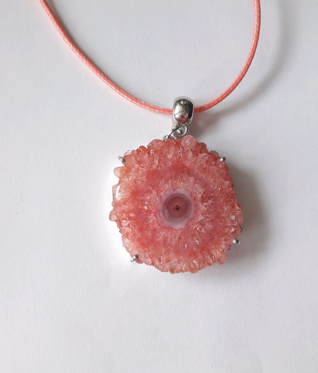 украшение ручной работы, украшение на шею кулон, украшение с натуральным камнем, сталактит, солнечный кварц, кулон солнечного кварца