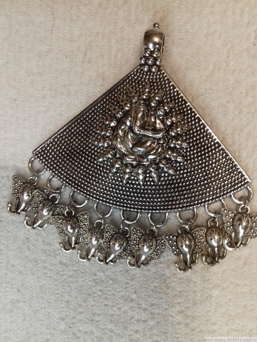 Кулон из стилизованного коннектора с подвесками в виде слонов