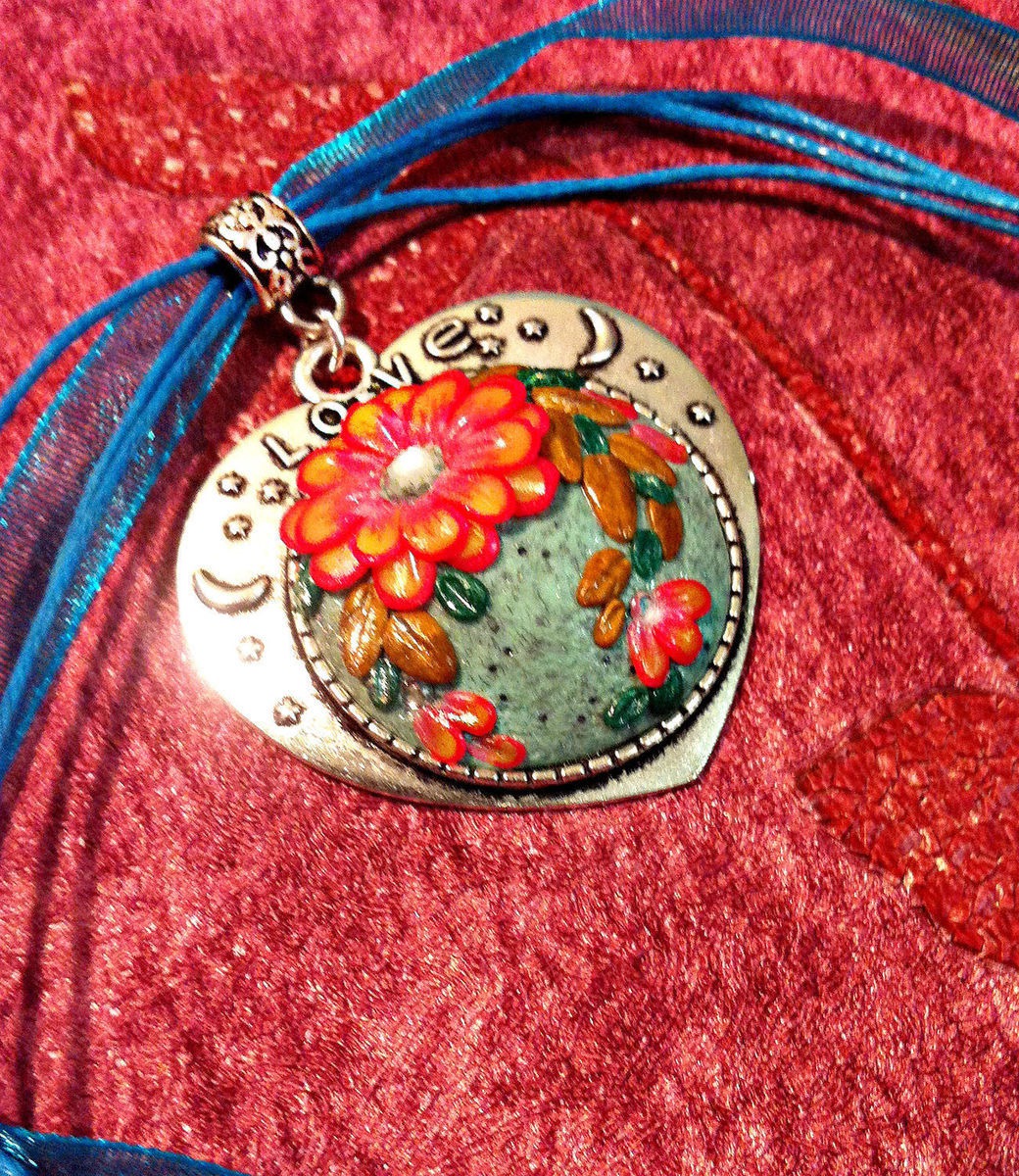 Кулон Сердечко выполнен из полимерной глины в технике филигрань.