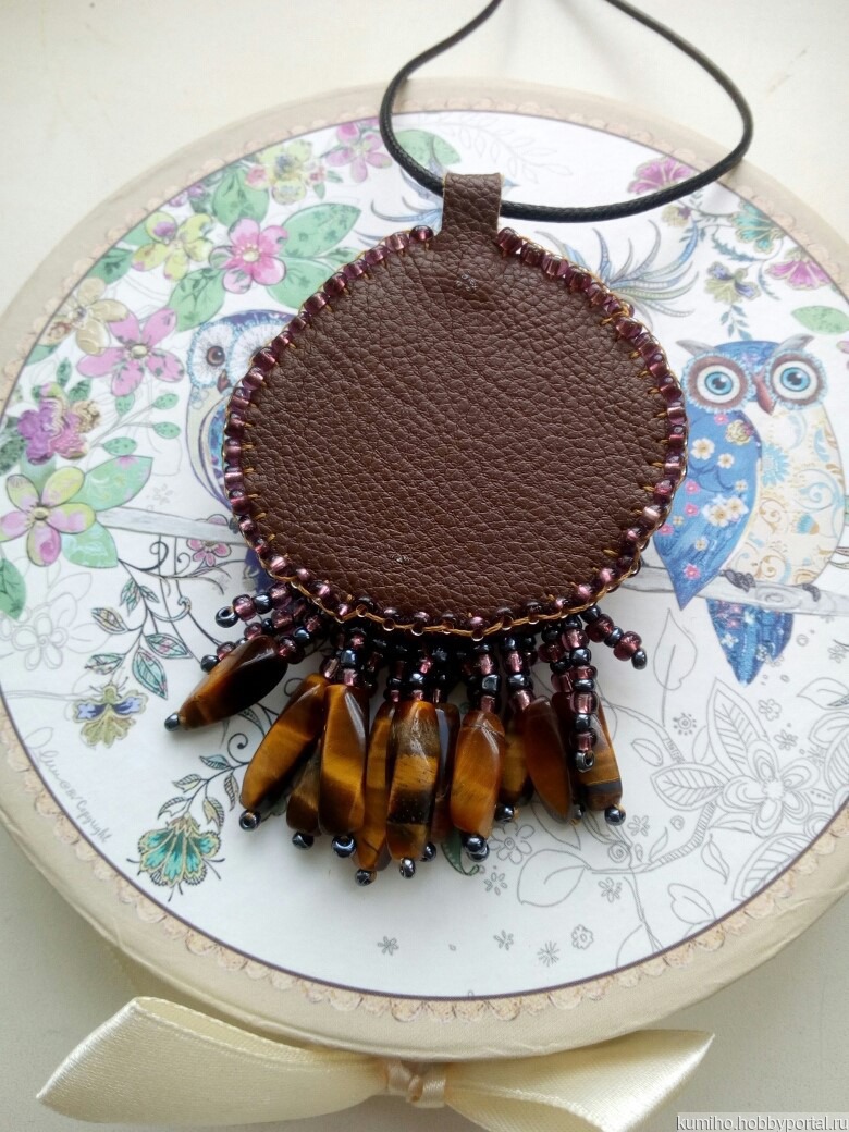 бисер, тигровый глаз, ракушка натуральная, кожа искусственная